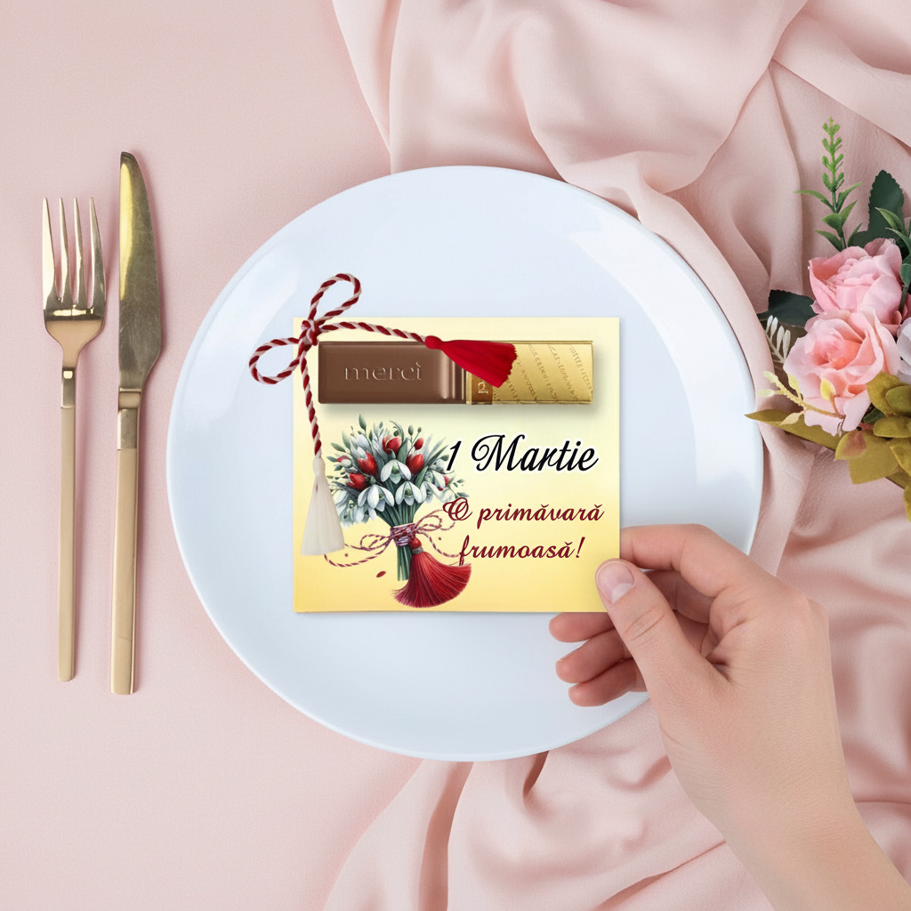 Comandă acum mărtisoarele cu ciocolată Merci și cartonaș personalizat și transformați „1 martie ”-ul într-un cadou plin de rafinament și emoție!