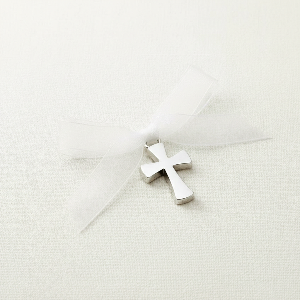 Cruciulita mica simpla din metal nichelat. Se ofera invitatiilor cu ocazia ceremoniei de botez ca marturie.