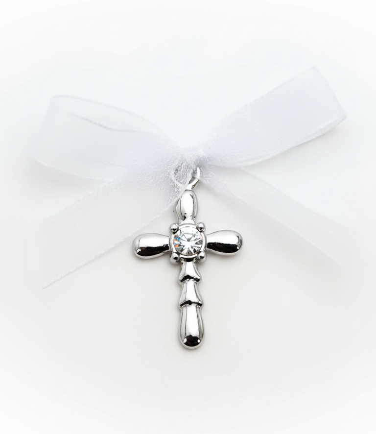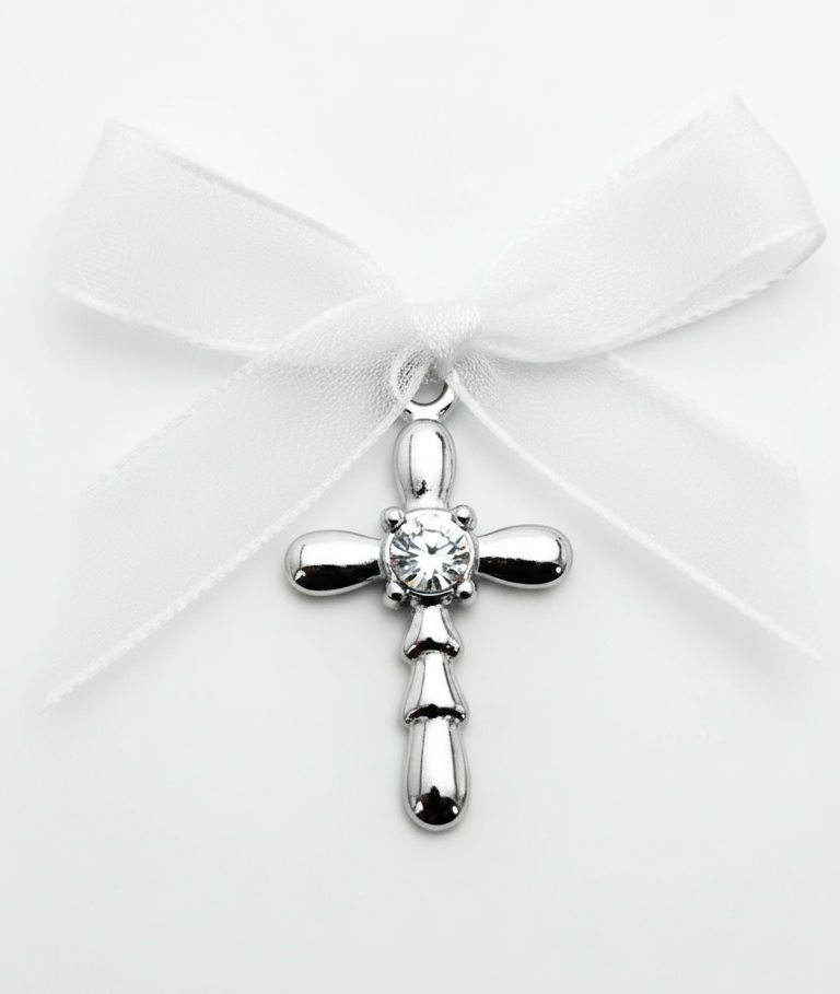 Cruciulite de botez cu forma deosebita special concepute pentru botezul micutului dvs. Cruciulitele sunt realizate din metal nichelat si sunt accesorizate cu fundite din organza de diferite culori. In cadrul slujbei de botez, fiecare invitat primeste o cruciulia de botez accesorizata cu o fundita colorata.