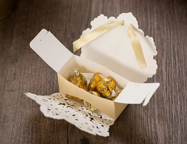 Cutiutele pot fi umplute cu bomboane, migdale sau alune glazurate spre deliciul invitatilor la eveniment.
