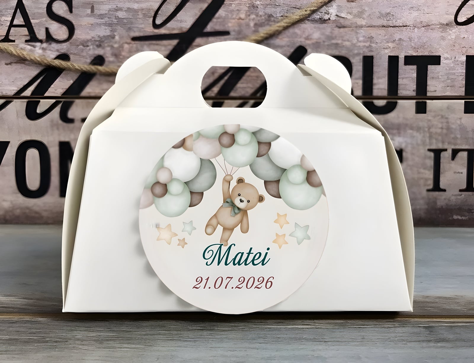 Optional, cutia poate fi personalizata cu eticheta cu nume si data.