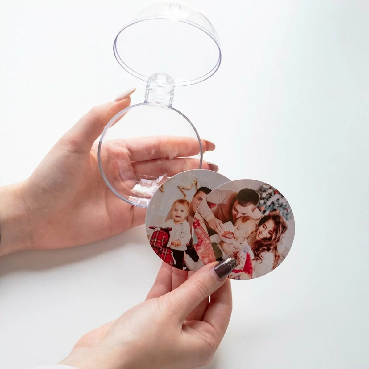 Transformă-ți bradul într-o poveste plină de amintiri cu acest GLOB de CRACIUN personalizabil cu FOTOGRAFIA TA 🌟 pentru ca fiecare Crăciun să aibă un strop de emoţie 😊Globul, transparent și elegant, e ușor și delicat 🎁 perfect pentru agățat pe ramuri sau pentru a oferi un cadou special persoanelor dragi 👨‍👩‍👧‍👦. Dimensiunea compactă (7 cm) îl face ideal pentru a completa cu gust decorul bradului 🎄.