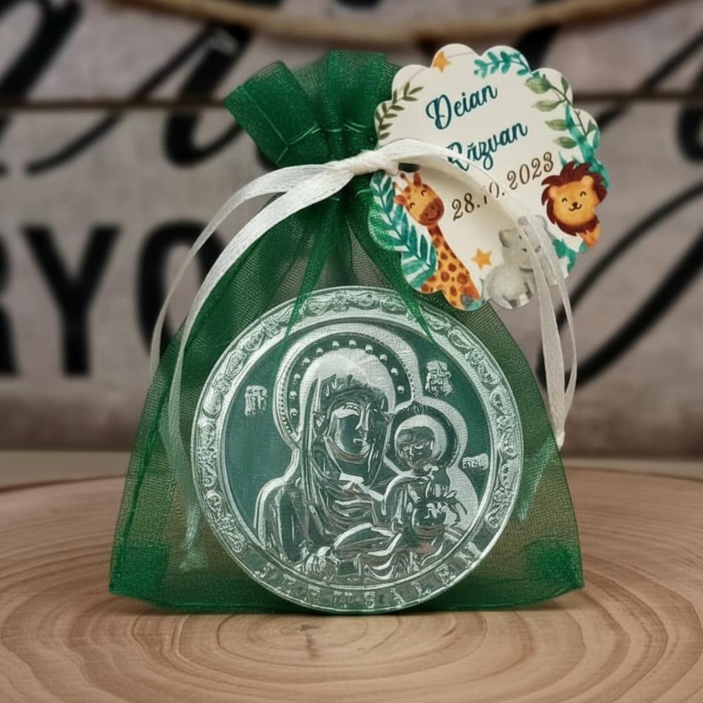 Optional, marturia de botez poate fi personalizata cu o eticheta cu numele si data evenimentului.