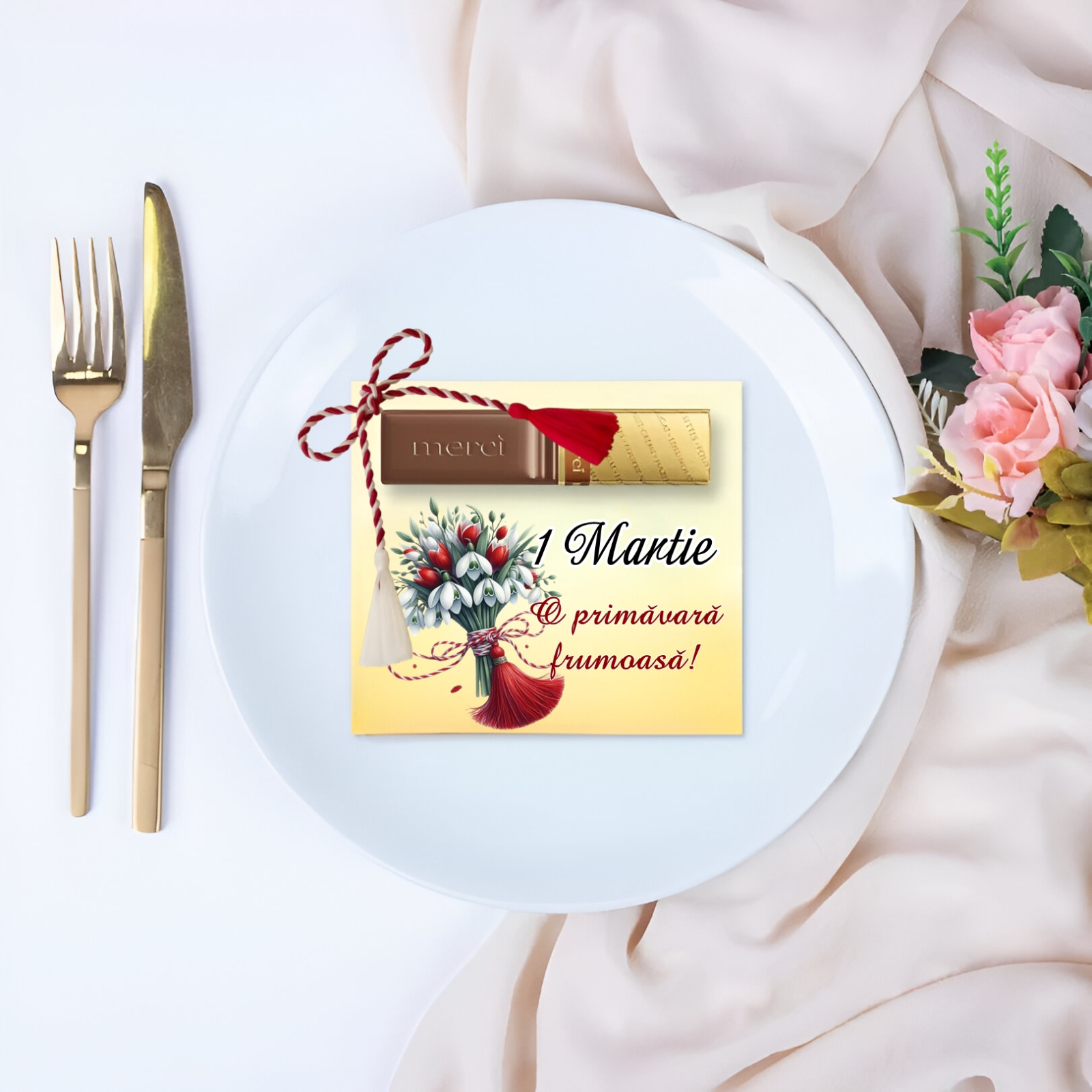Comandă acum mărtisoarele cu ciocolată Merci și cartonaș personalizat și transformați „1 martie ”-ul într-un cadou plin de rafinament și emoție!