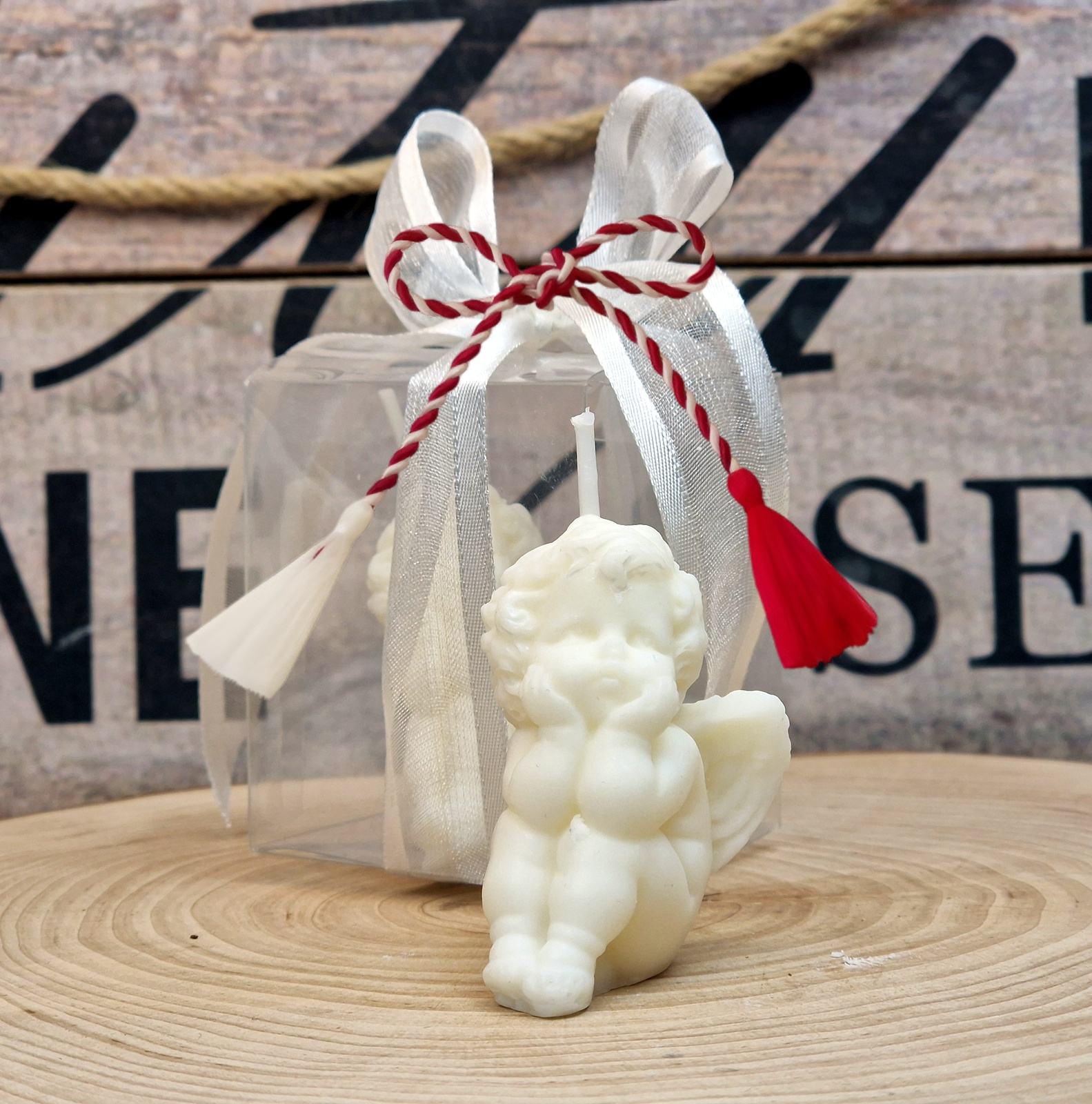 Surprinde-ți invitații cu o marturie de botez speciala - o lumânare din ceara soia in forma de FLUTURAS ambalata elegant într-o cutie kraft cu fereastră.