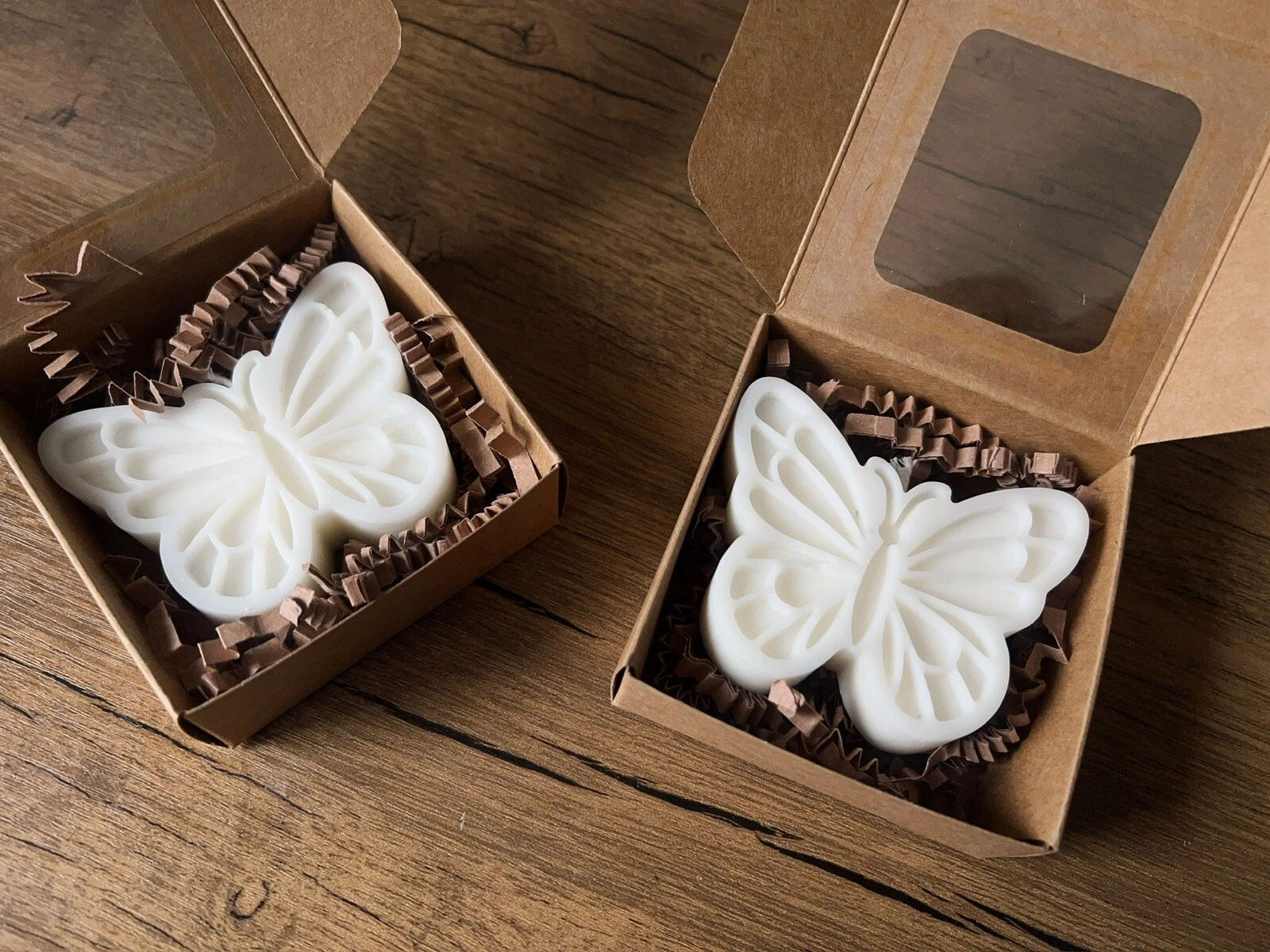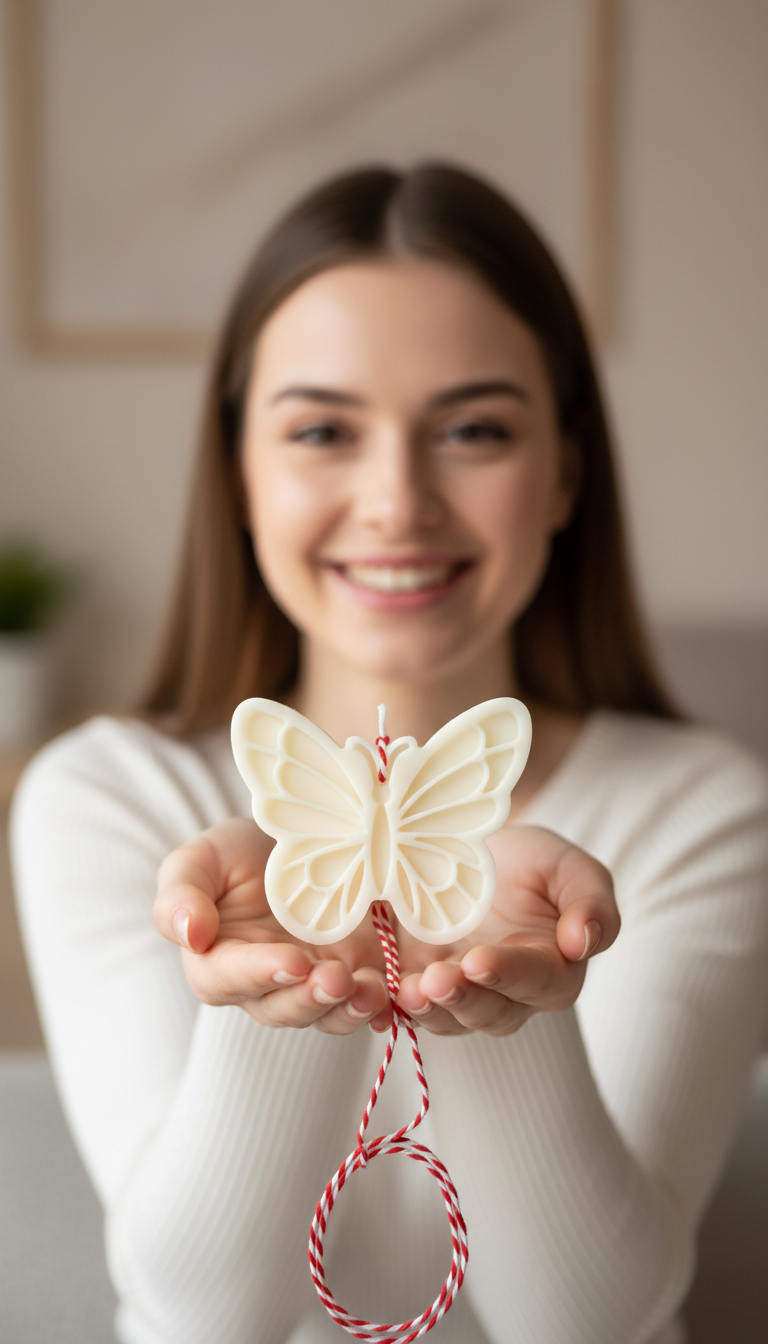 Surprinde-o cu un martisor - lumanare din ceara de soia in forma de fluture ambalata elegant într-o cutie kraft cu fereastră.