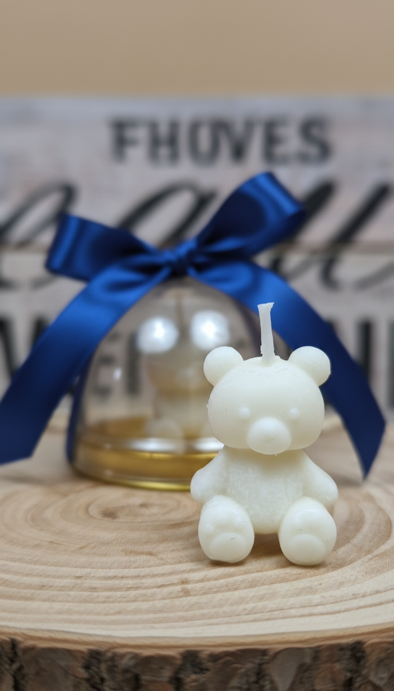 Surprinde-ți invitații cu o marturie de botez speciala - o mini lumânare din ceara soia in forma de ursulet personalizata si ambalata elegant intr-o cutiuta alba cu fereastra in forma de inimioara.