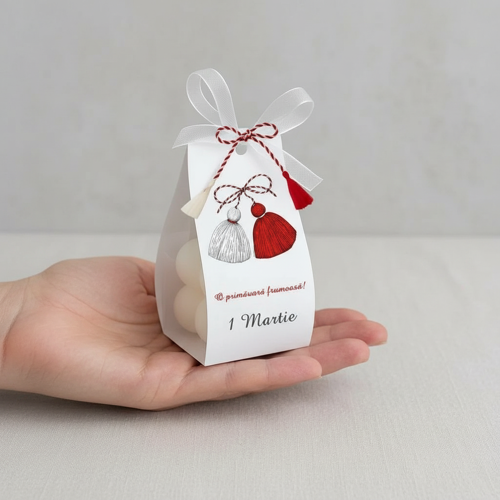 Lumânare mărturie bubble 4×4 cm, turnată manual din ceară de soia cu fitil din bumbac organic.Surprinde-ți invitații cu o marturie de botez speciala - o lumânare din ceara soia personalizata si ambalata elegant.