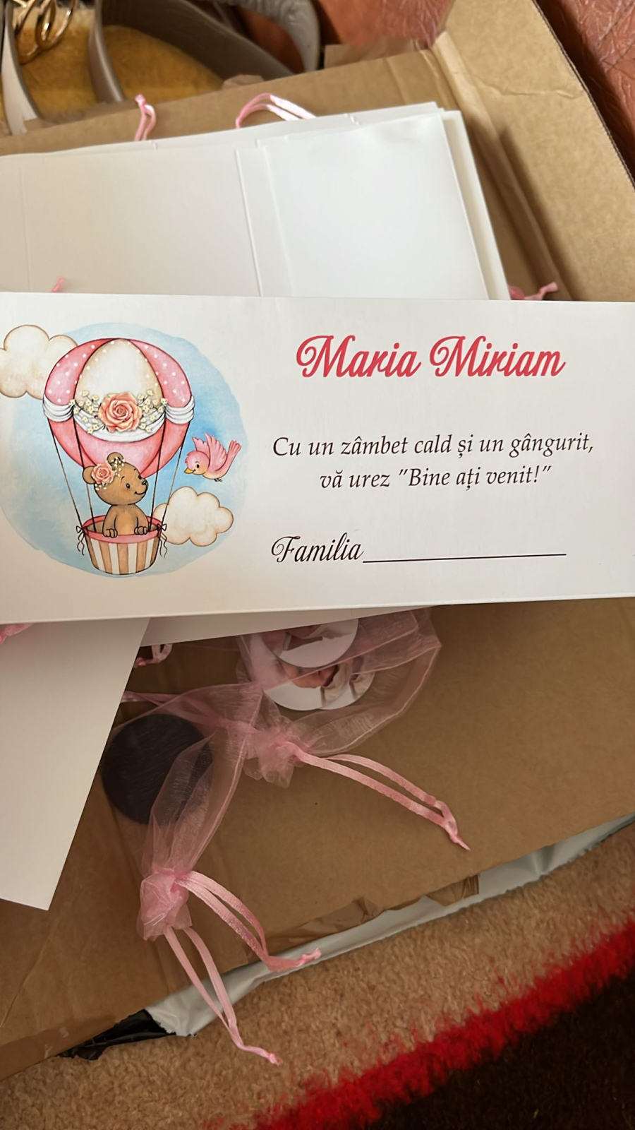 Personalizarea cu text inseamna sa scriem pe plic numele copilui si mesajul dorit.