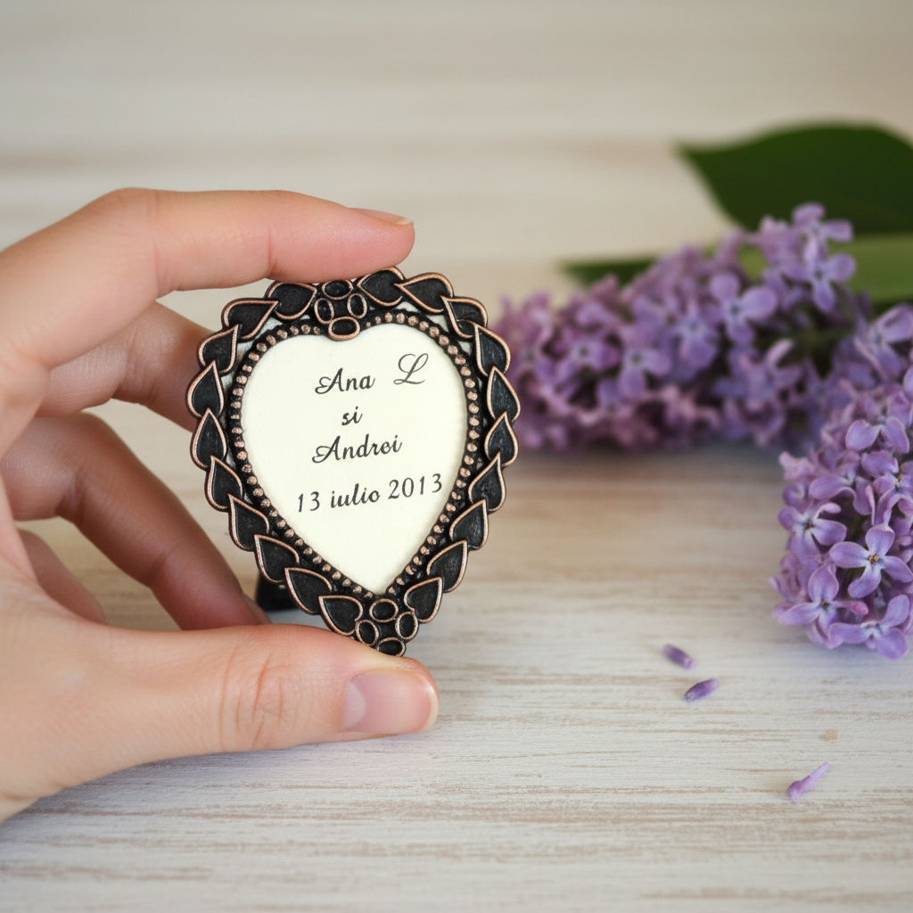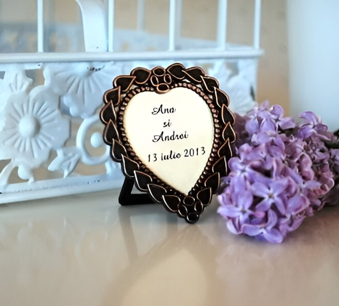 Rama foto in forma de inimioara. Arei piciorus de sprijin, pentru a fi plasata pe o suprafata plana.
