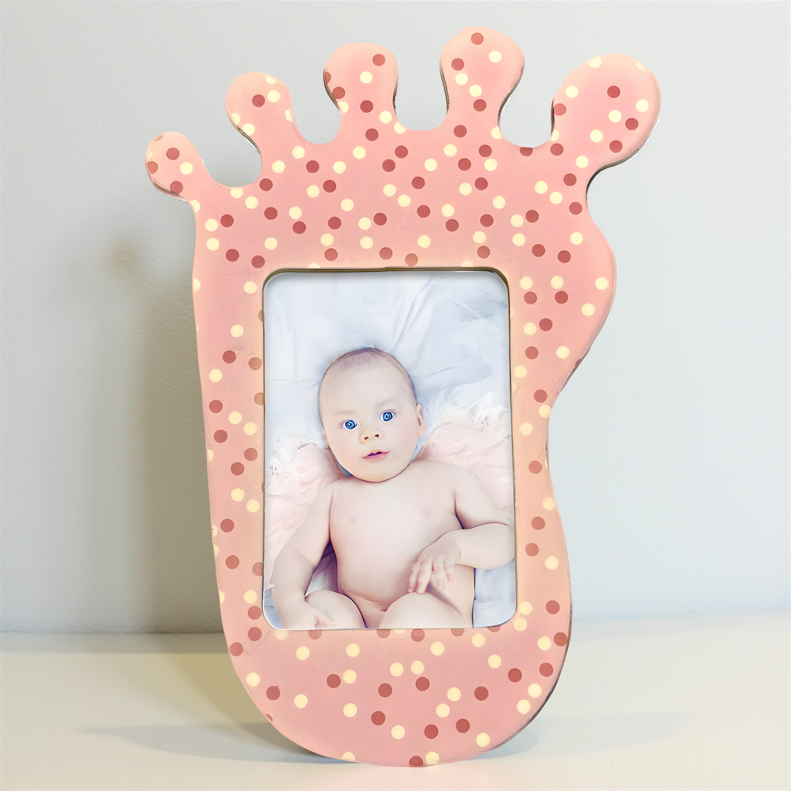 Marturie botez – rama foto magnetica in forma de piciorus de bebe
