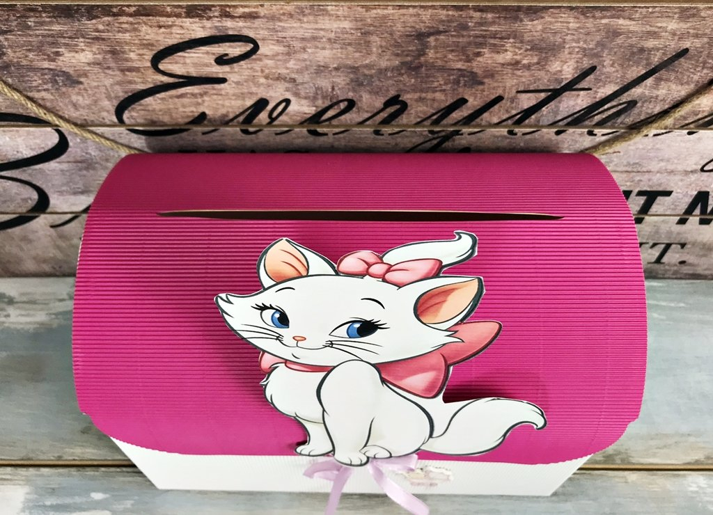 Cufarul este accesorizat cu un decupaj tematic din carton.