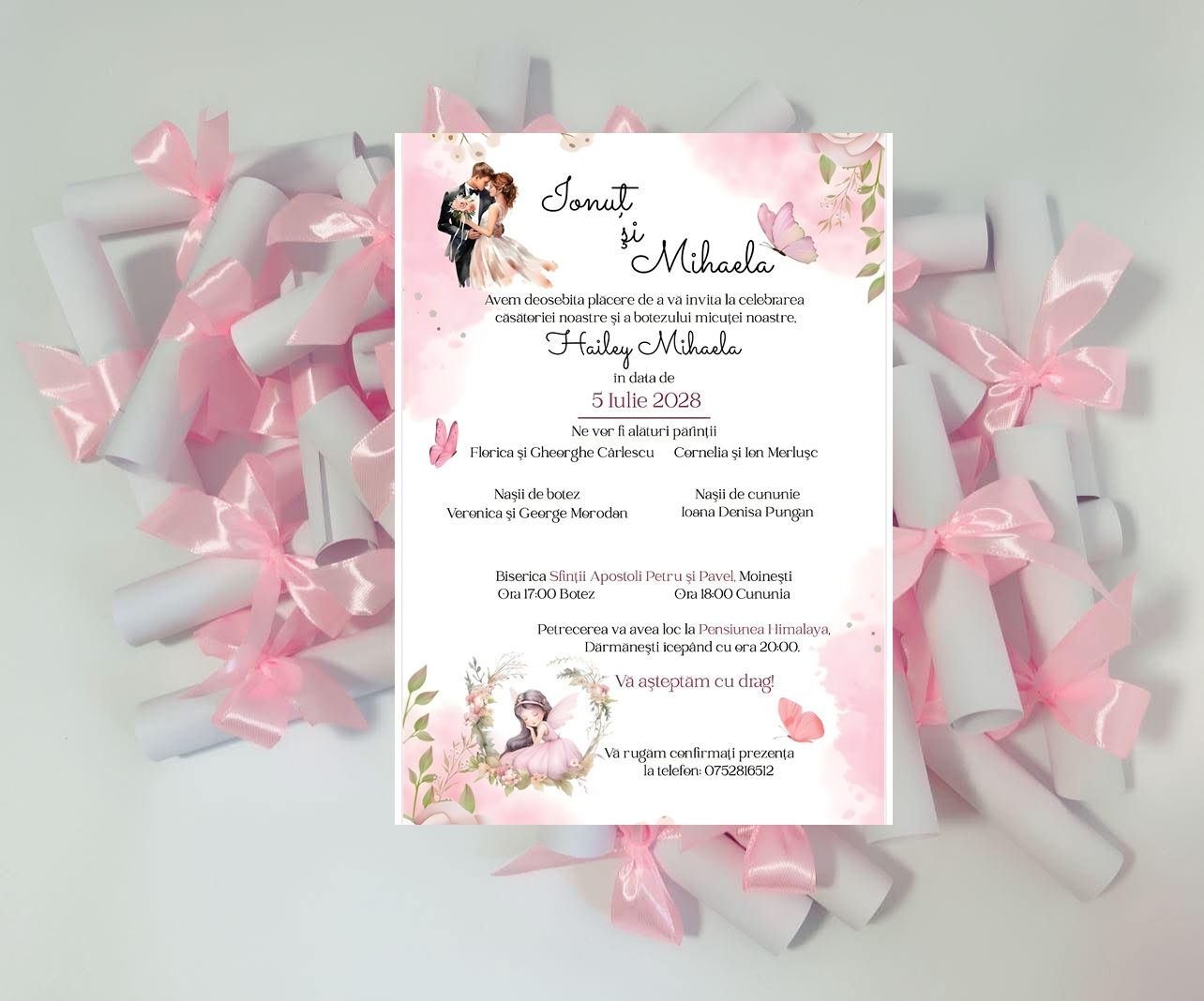 Prețul afișat NU INCLUDE serviciile de TIPARIRE TEXT si ASAMBLARE INVITATIE