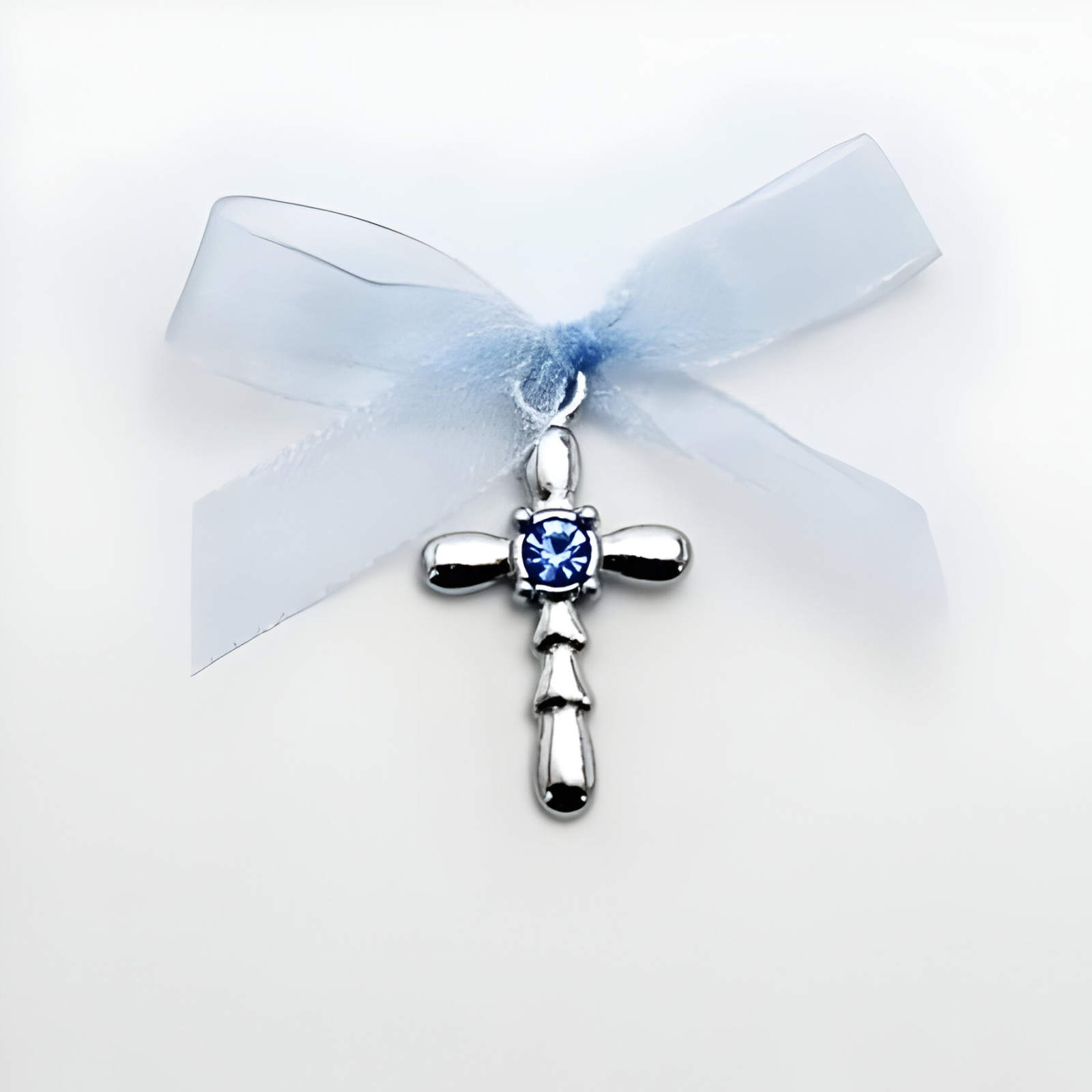 Cruciulite de botez cu forma deosebita special concepute pentru botezul micutului dvs. Cruciulitele sunt realizate din metal nichelat si sunt accesorizate cu fundite din organza de diferite culori. In cadrul slujbei de botez, fiecare invitat primeste o cruciulia de botez accesorizata cu o fundita colorata.