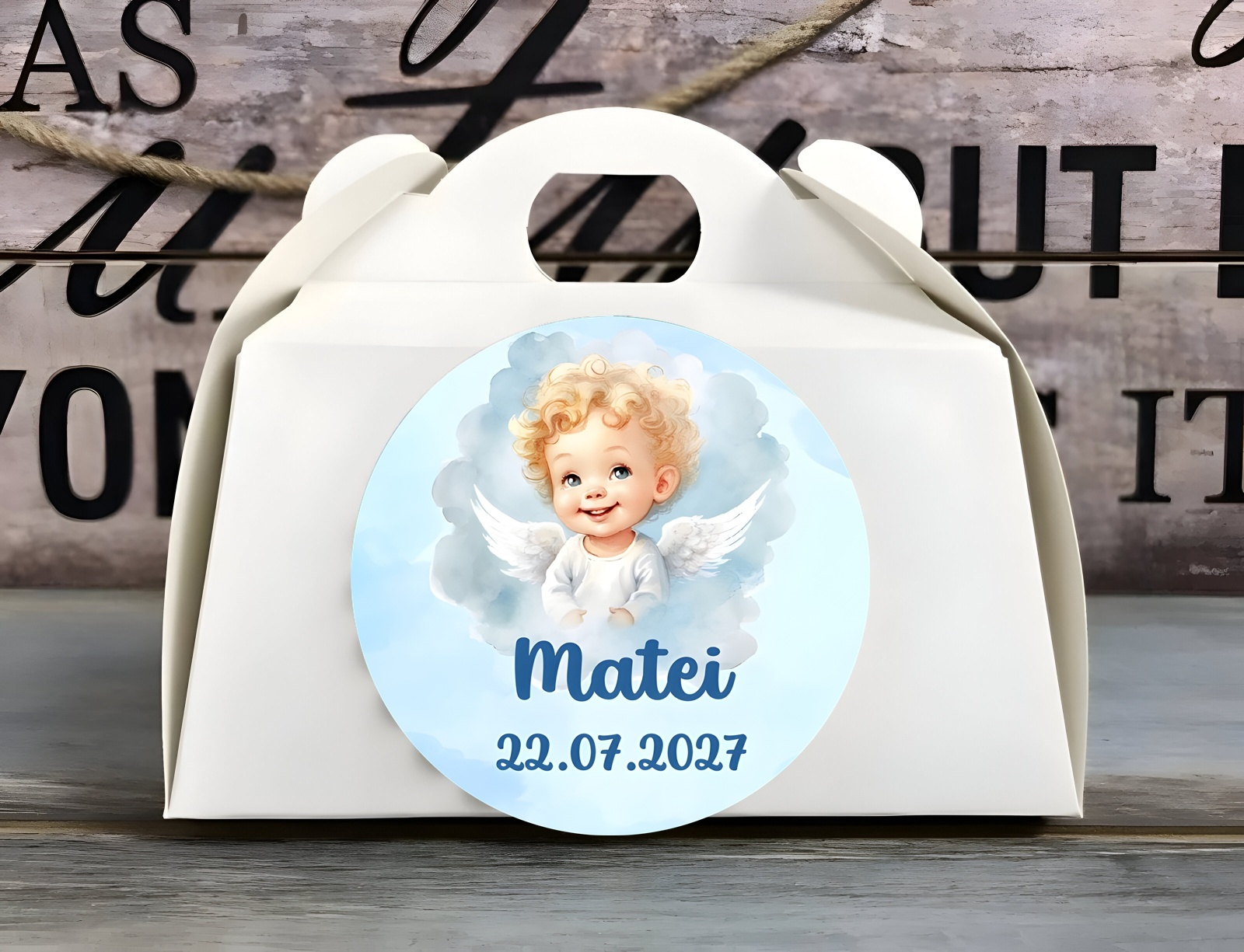 Optional, cutia poate fi personalizata cu eticheta cu nume si data.