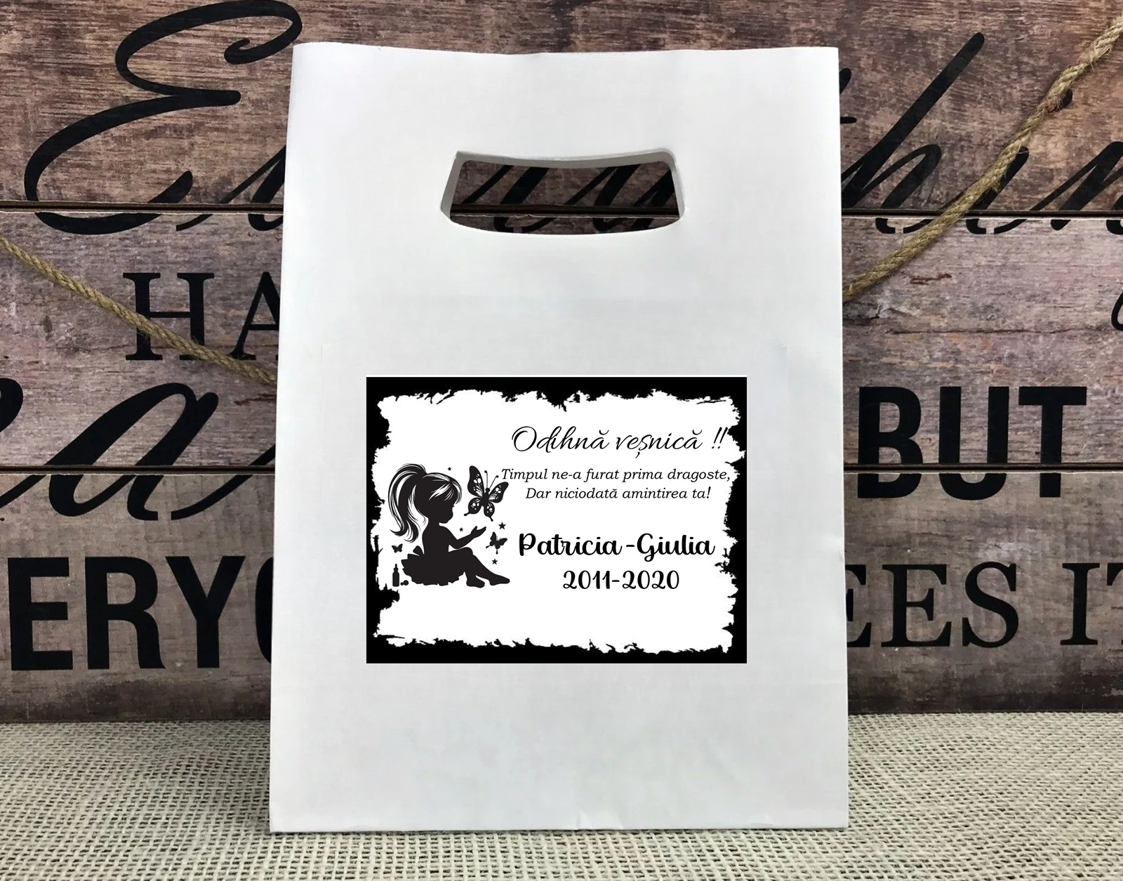 Personalizarea cu nume si data NU este inclusa in pretul pungii. Dacă doriți si personalizare, vă rugăm să bifați opțiunea si să ne lăsați datele.