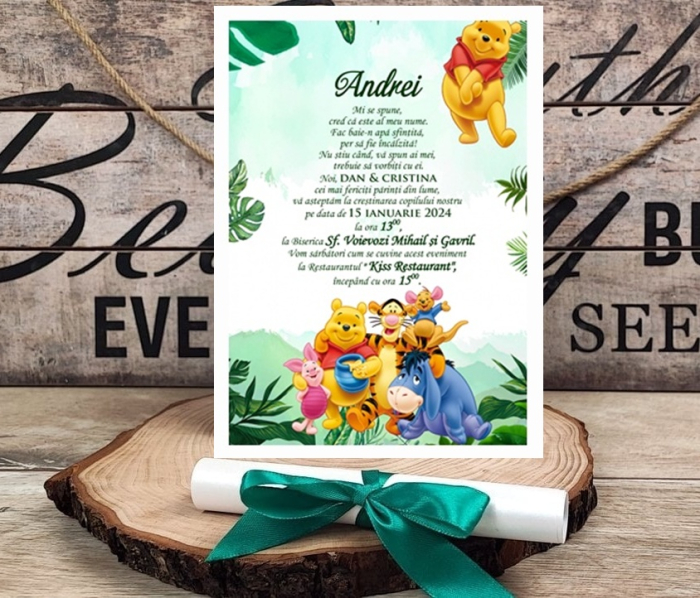 Invitație de botez tip papirus realizată din urmatoarele piese: