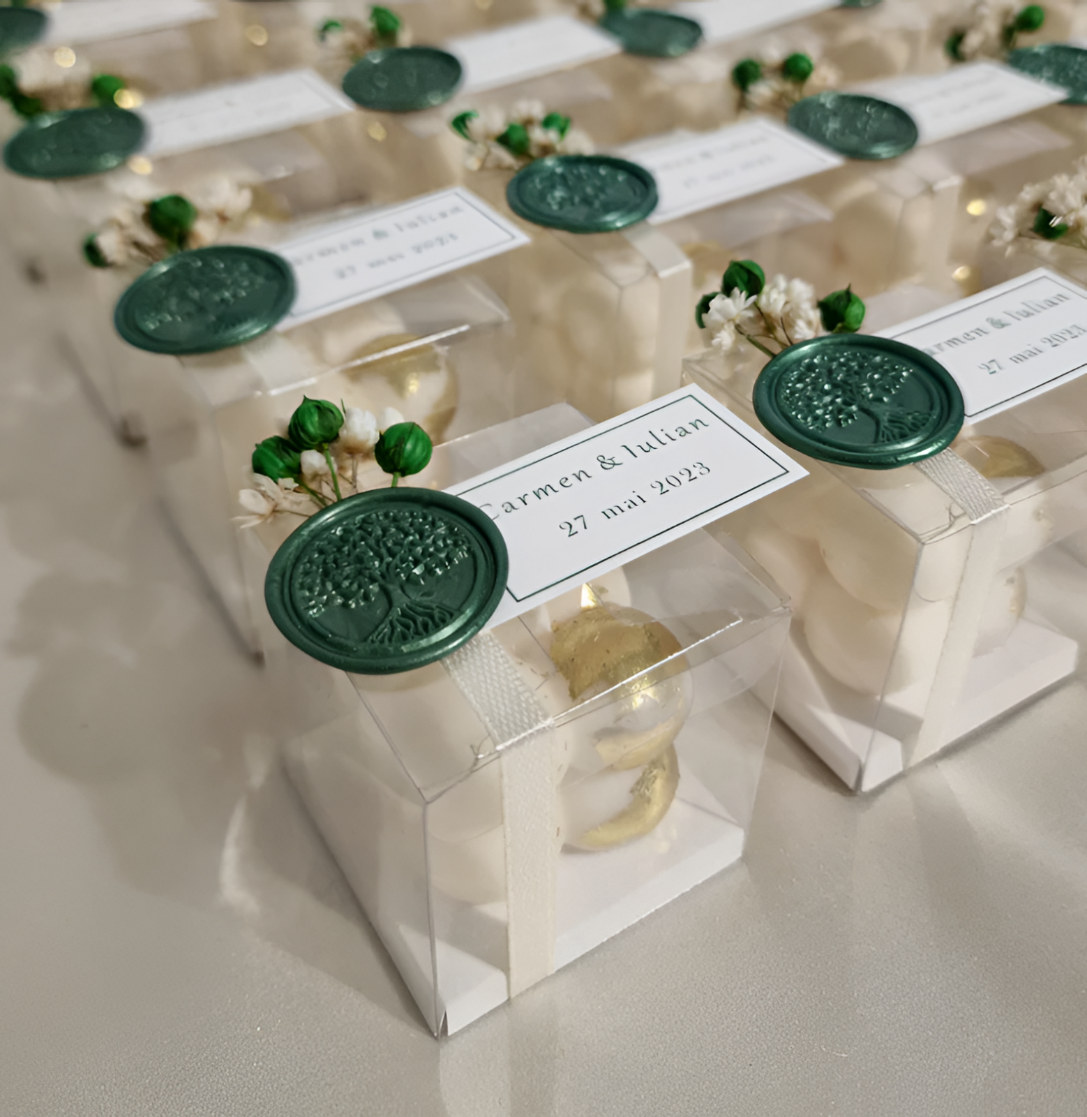 Surprinde-ți invitații cu o marturie de botez speciala - o lumânare din ceara soia bubble personalizata si ambalata elegant.