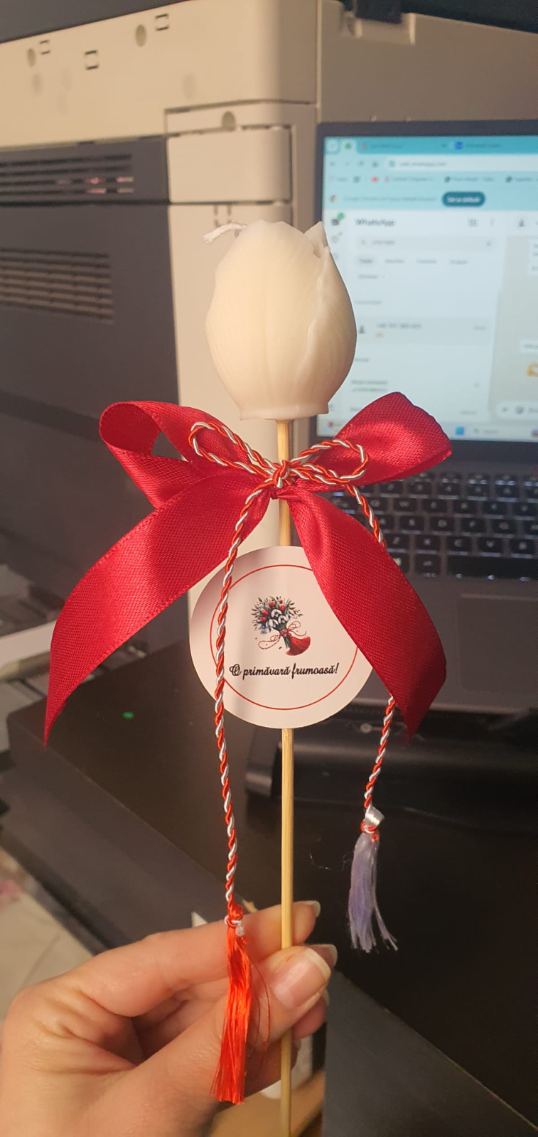 MARȚISOR lumanare in forma de LALEA, turnată manual din ceară de soia cu fitil din bumbac organic.Surprinde-o cu o marțisor speciala - o lumânare în formă de floare din ceara soia personalizata cu o eticheta de martisor
