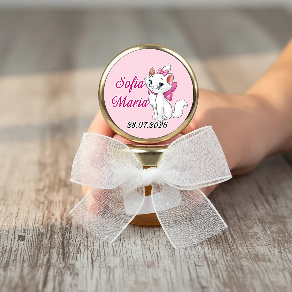 Marturia se poate personaliza cu o eticheta rotunda cu numele si data evenimentului.