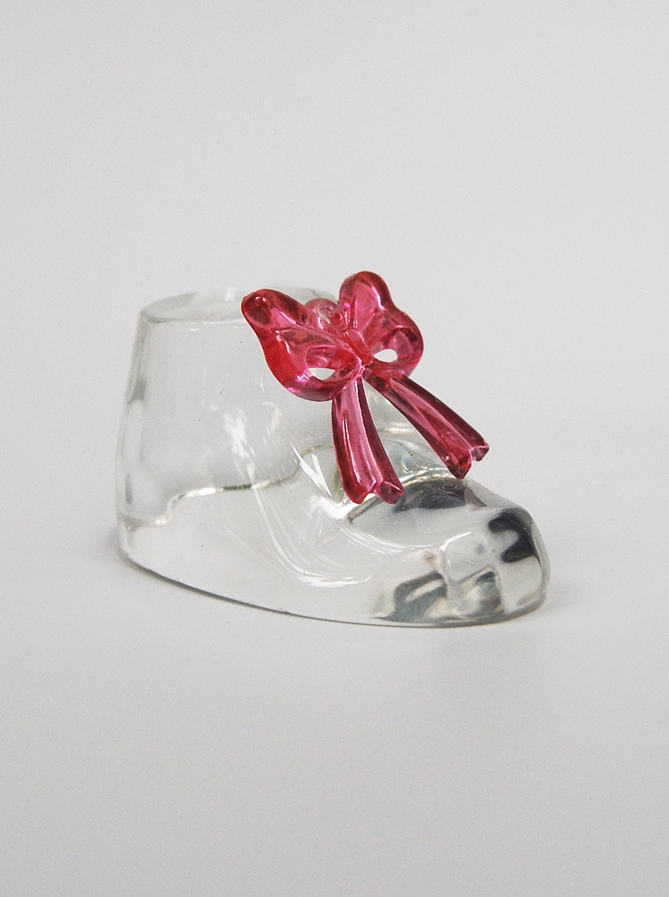 Marturie de botez - un botosel de bebelus realizat din cristal si accesorizat cu o fundita de culoare roz.