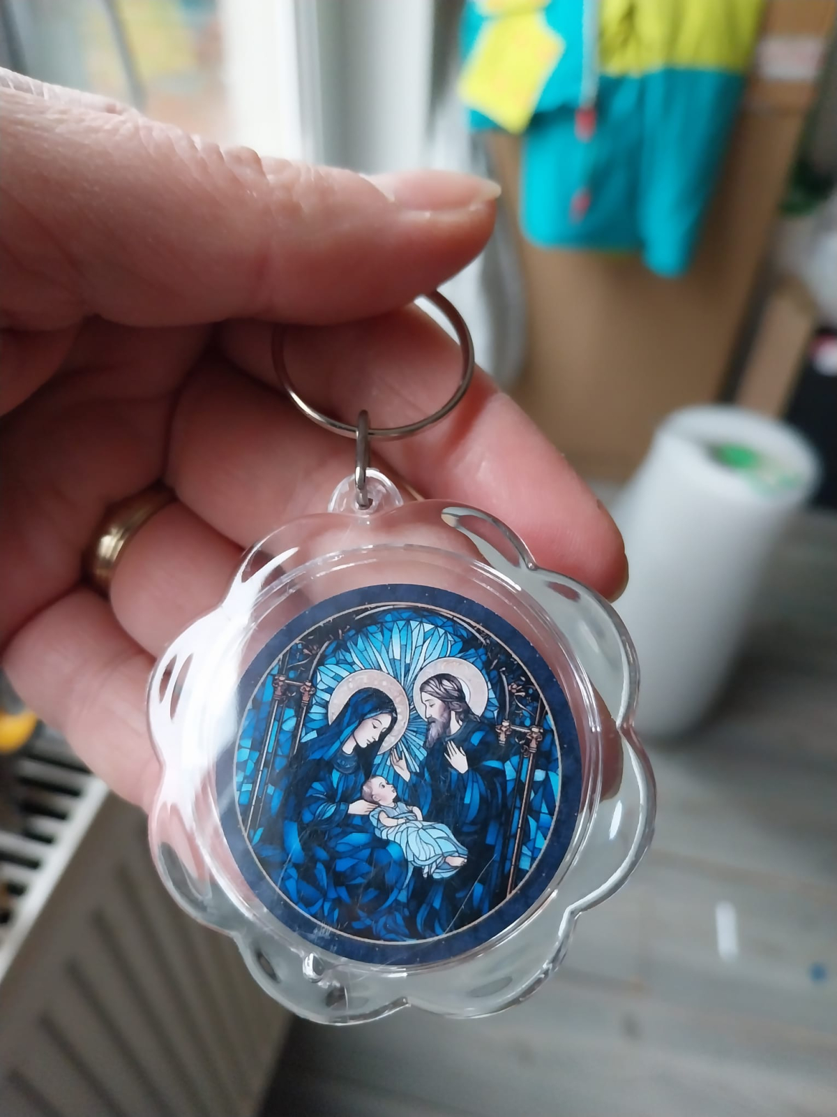 Asamblarea brelocului inseamna sa puneti fotografia rotunda cu Maica Domnului in breloc. (Brelocul este prevazut cu un geam (ca o ușa) care se deschide pentru a se putea introduce fotografia. In cazul in care nu veti opta pentru asamblare, veti primi produsele kit. (brelocurile de chei, separat, icoana foto separat, un singur produs va fi asamblat de model si restul le veti asambla dvs.