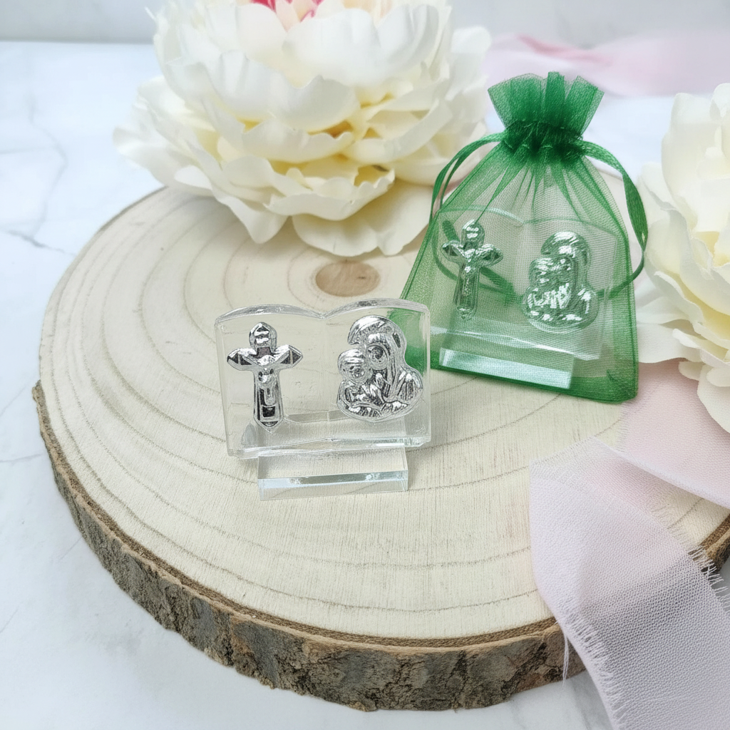 Marturiile iconita se ofera ambalate in cutiute albe din carton sau in saculeti de organza