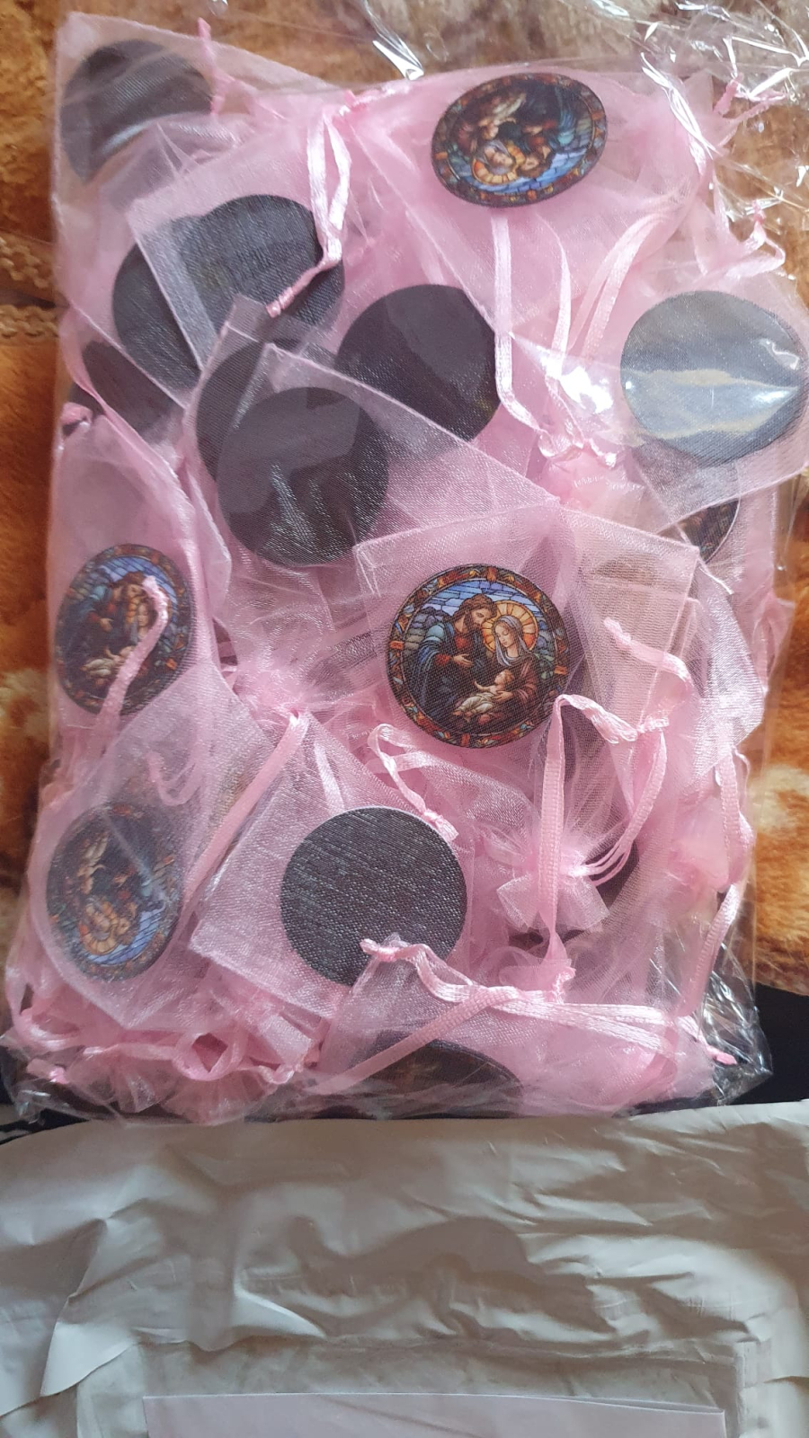 Marturii pentru nunta, botez sau alte evenimente ce simbolizeaza Nașterea Domnului (Nașterea lui Iisus Hristos) — un motiv central al iconografiei creștine./ Fecioara Maria, îmbrăcată în roșu și albastru (culori tradiționale care simbolizează iubirea divină și puritatea) Iosif, adesea reprezentat în veșminte albastre sau maro, în semn de credință și smerenie.Pruncul Iisus, înfășat, simbol al întrupării lui Dumnezeu.Steaua deasupra scenei este Steaua de la Betleem, care i-a călăuzit pe magi către locul nașterii lui Hristos