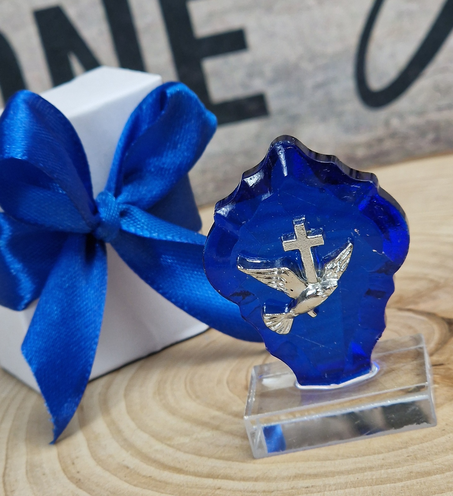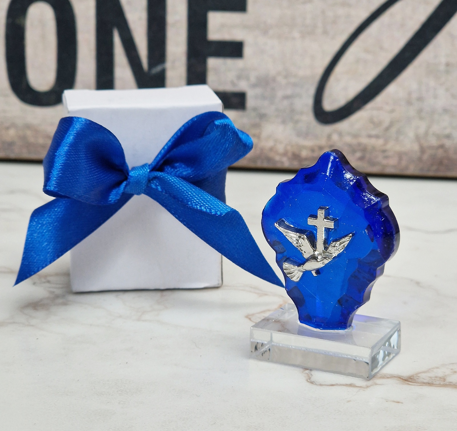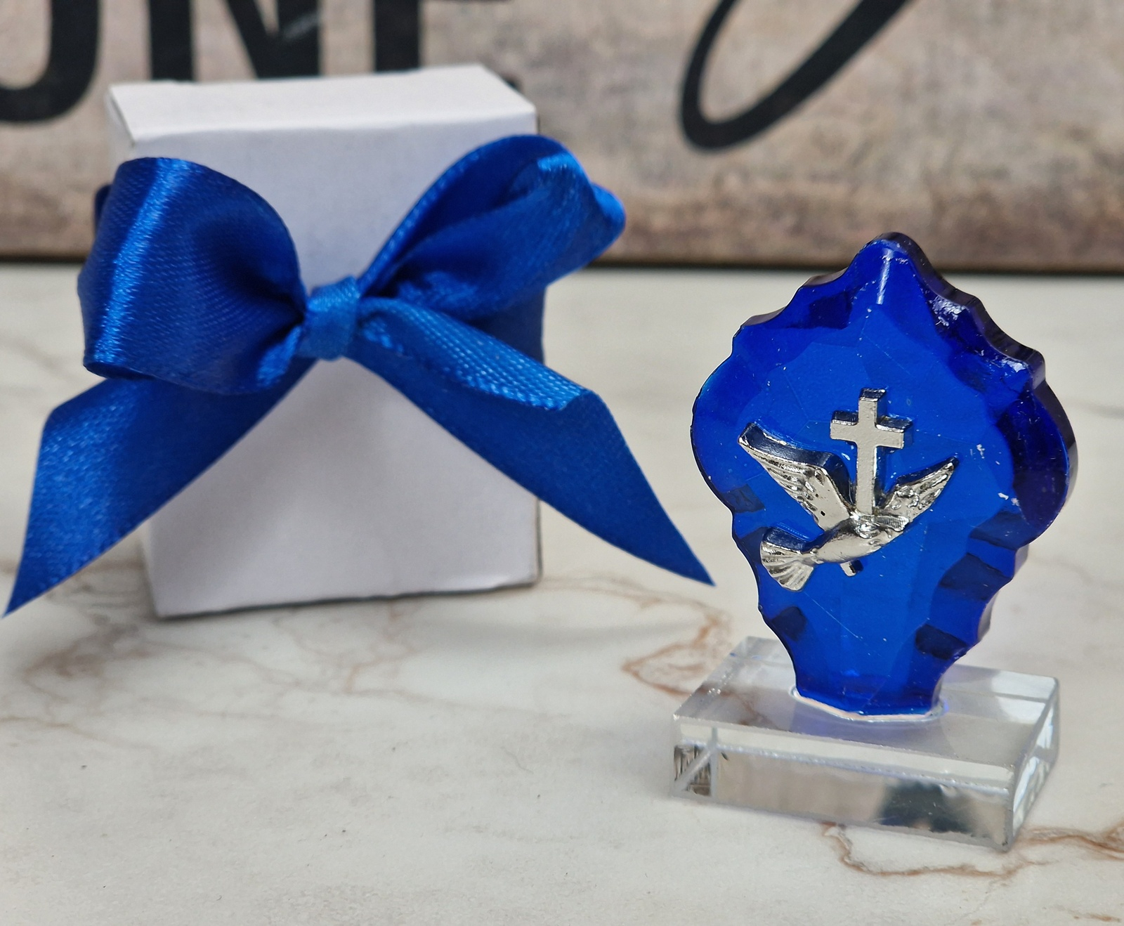 • Iconitele vin ambalate intr-o cutie alba, pe care se lipeste o eticheta cu datele evenimentului (numele bebelusului / mirilor si data evenimentului), accesorizate cu funda (culoarea este la alegere - roz pal, verde, albastru, crem, mov si rosu).