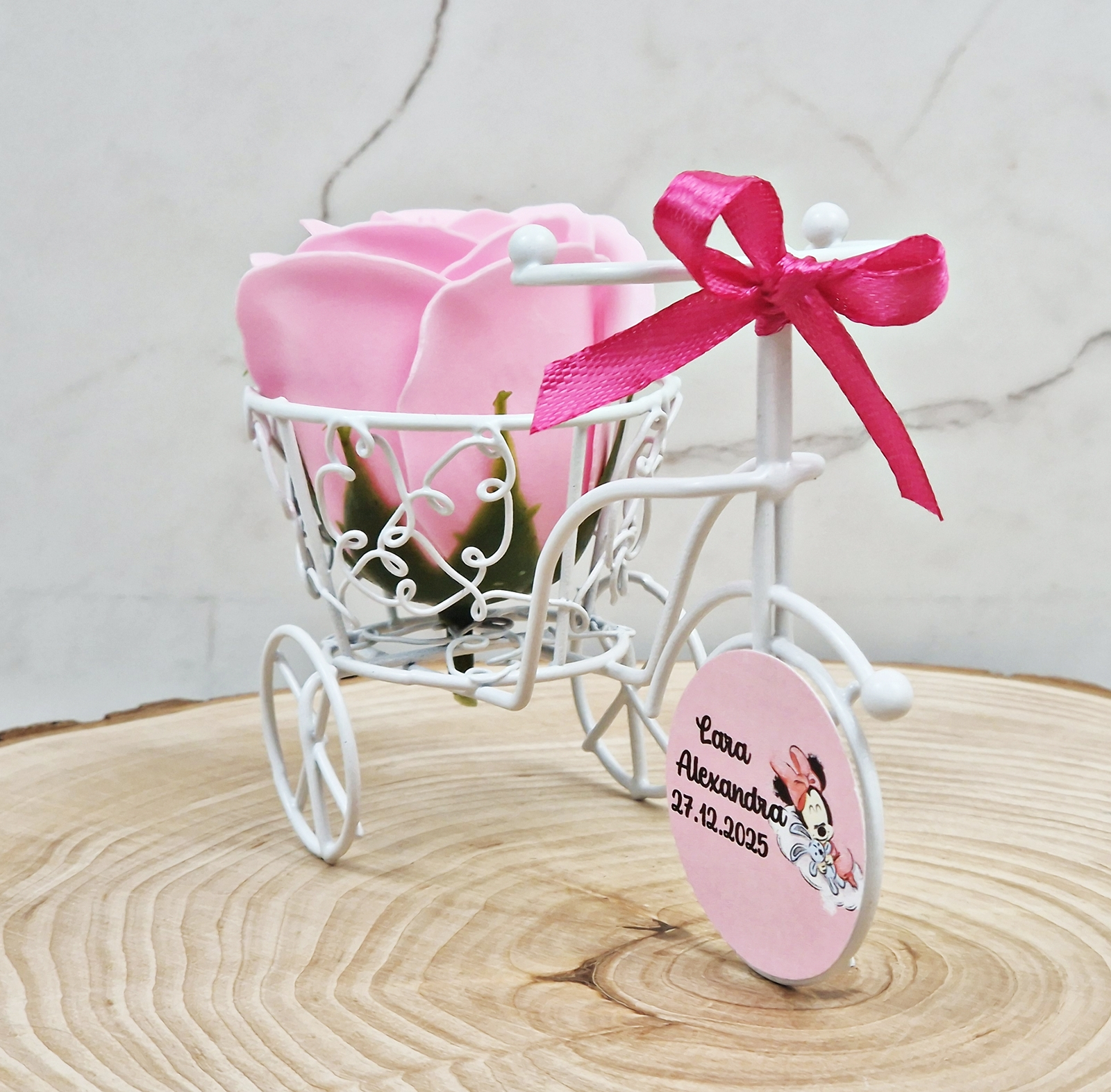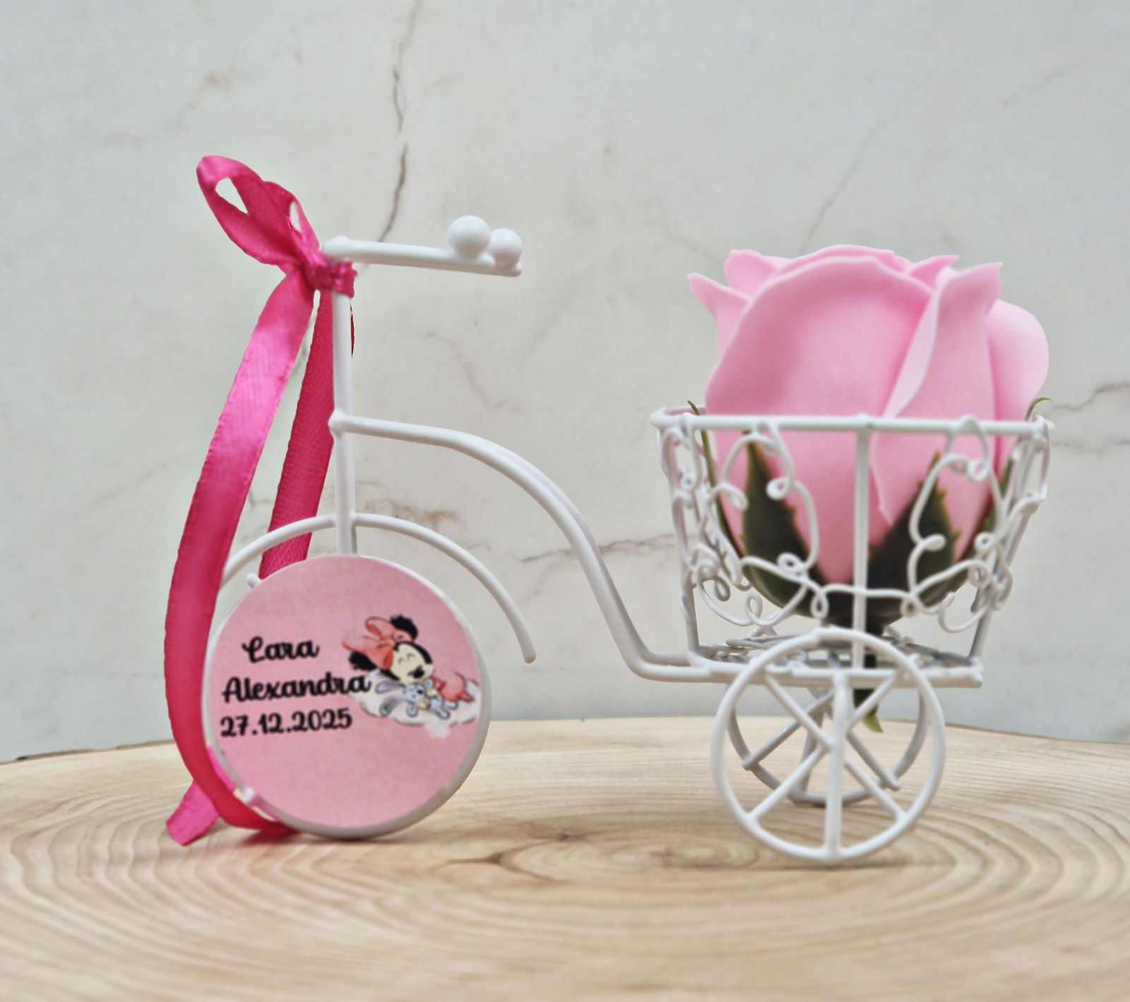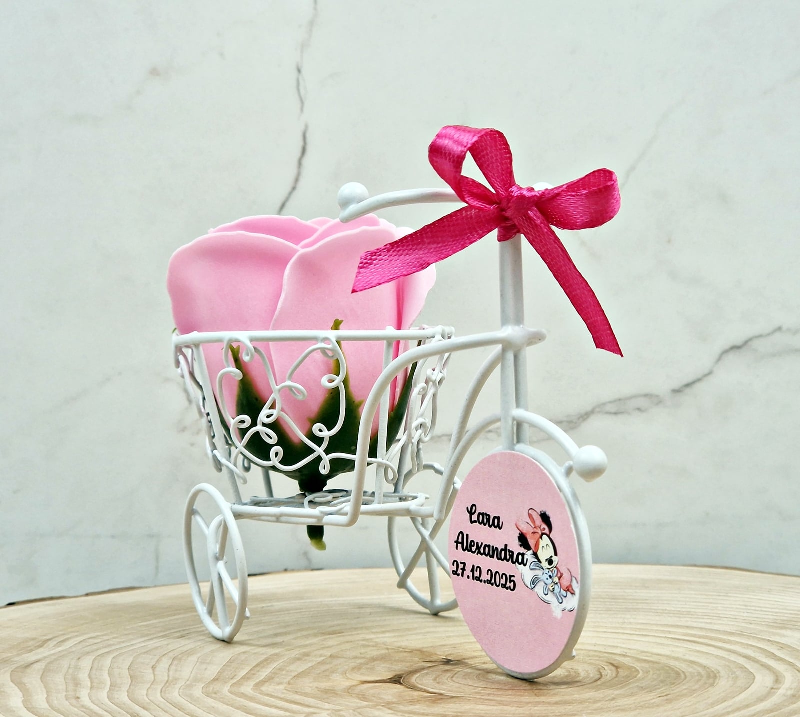 Marturie de botez, nunta sau evenimente 2 in 1- o caleasca din sarma cu un trandafir de sapun parfumat