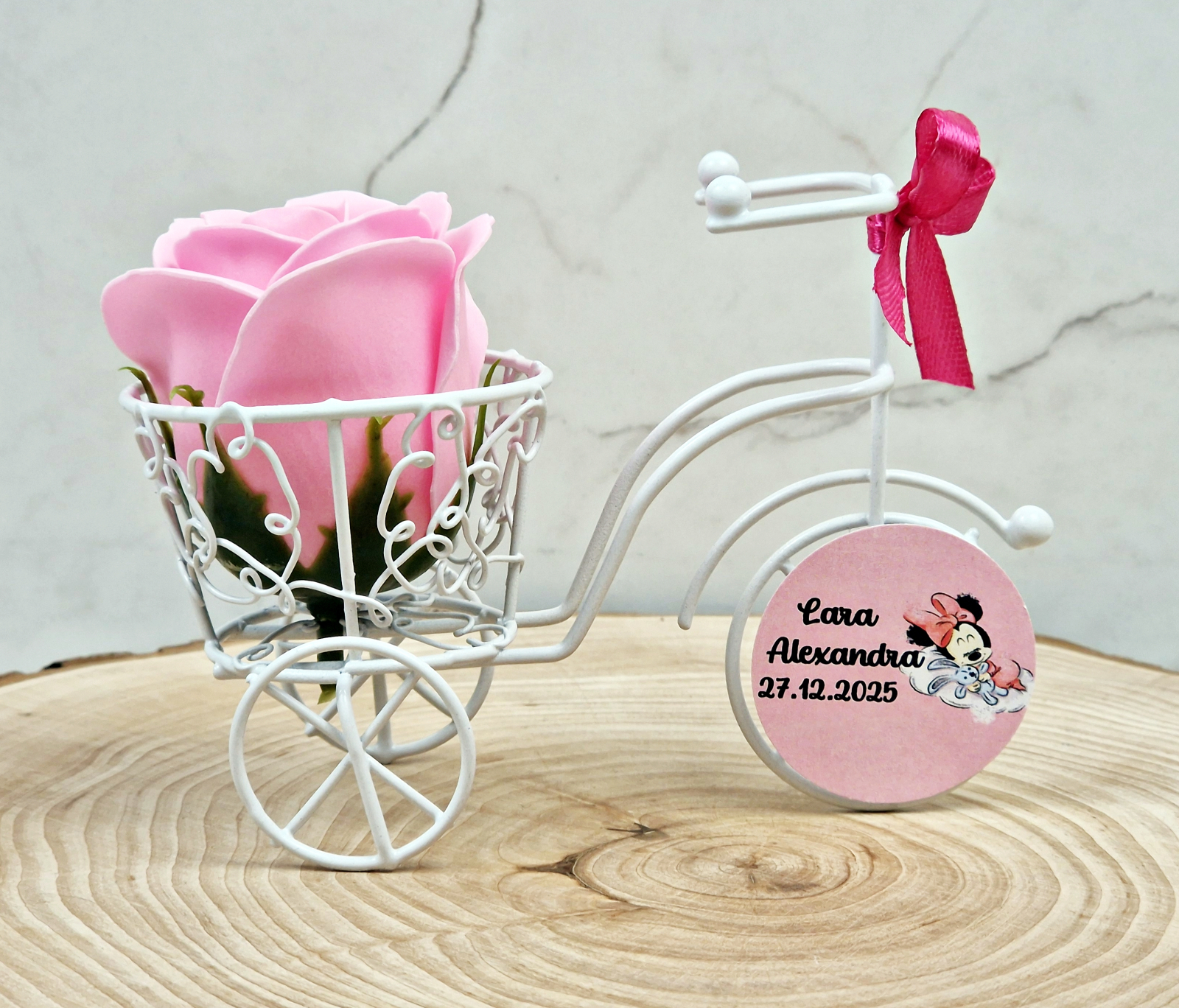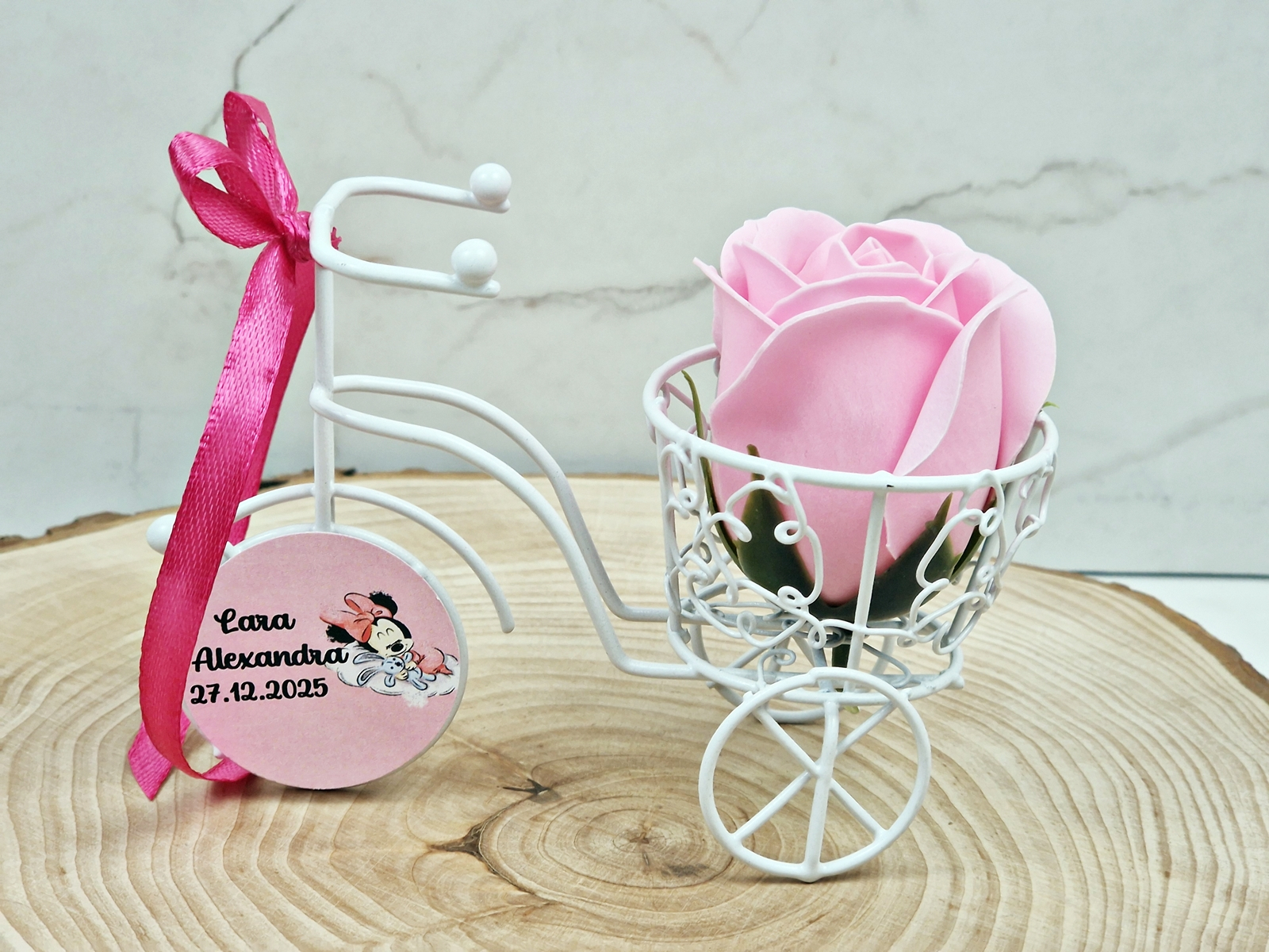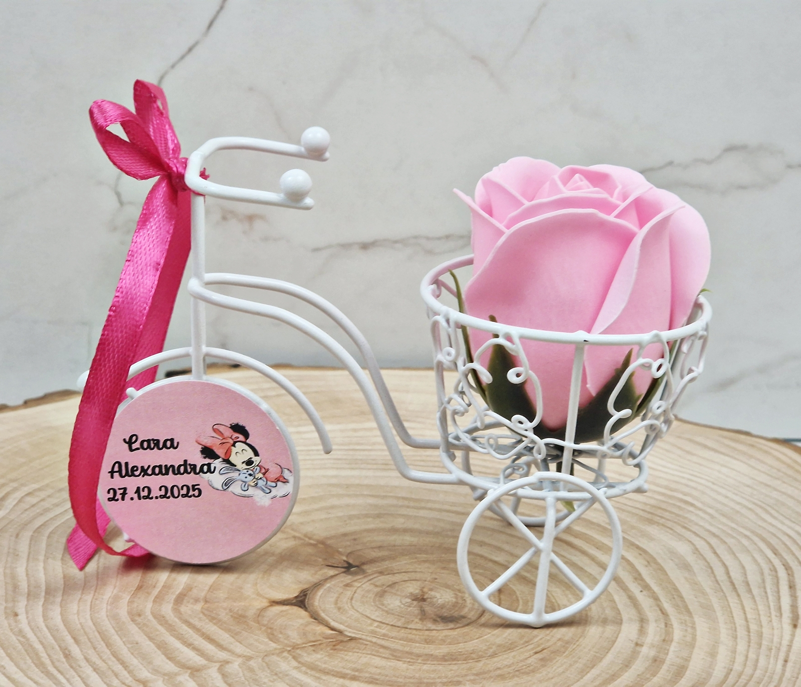 Marturie de botez, nunta sau evenimente 2 in 1- o caleasca din sarma cu un trandafir de sapun parfumat