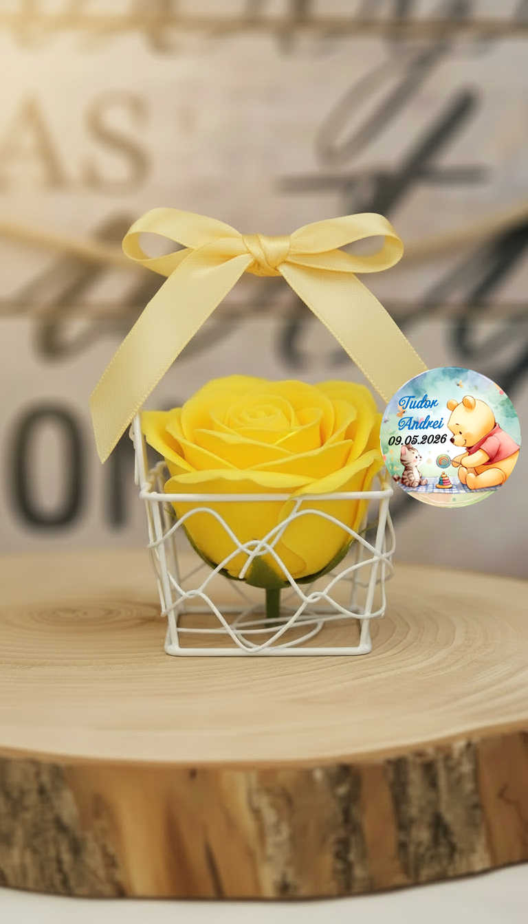 Marturie de botez, nunta sau evenimente 2 in 1- o caleasca din sarma cu un trandafir de sapun parfumat