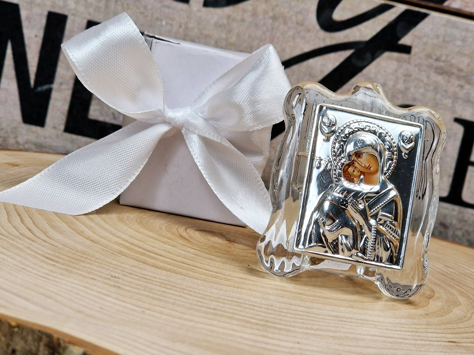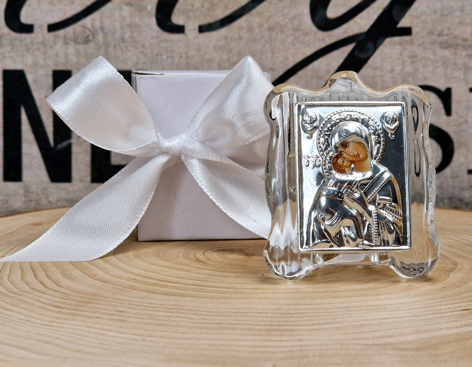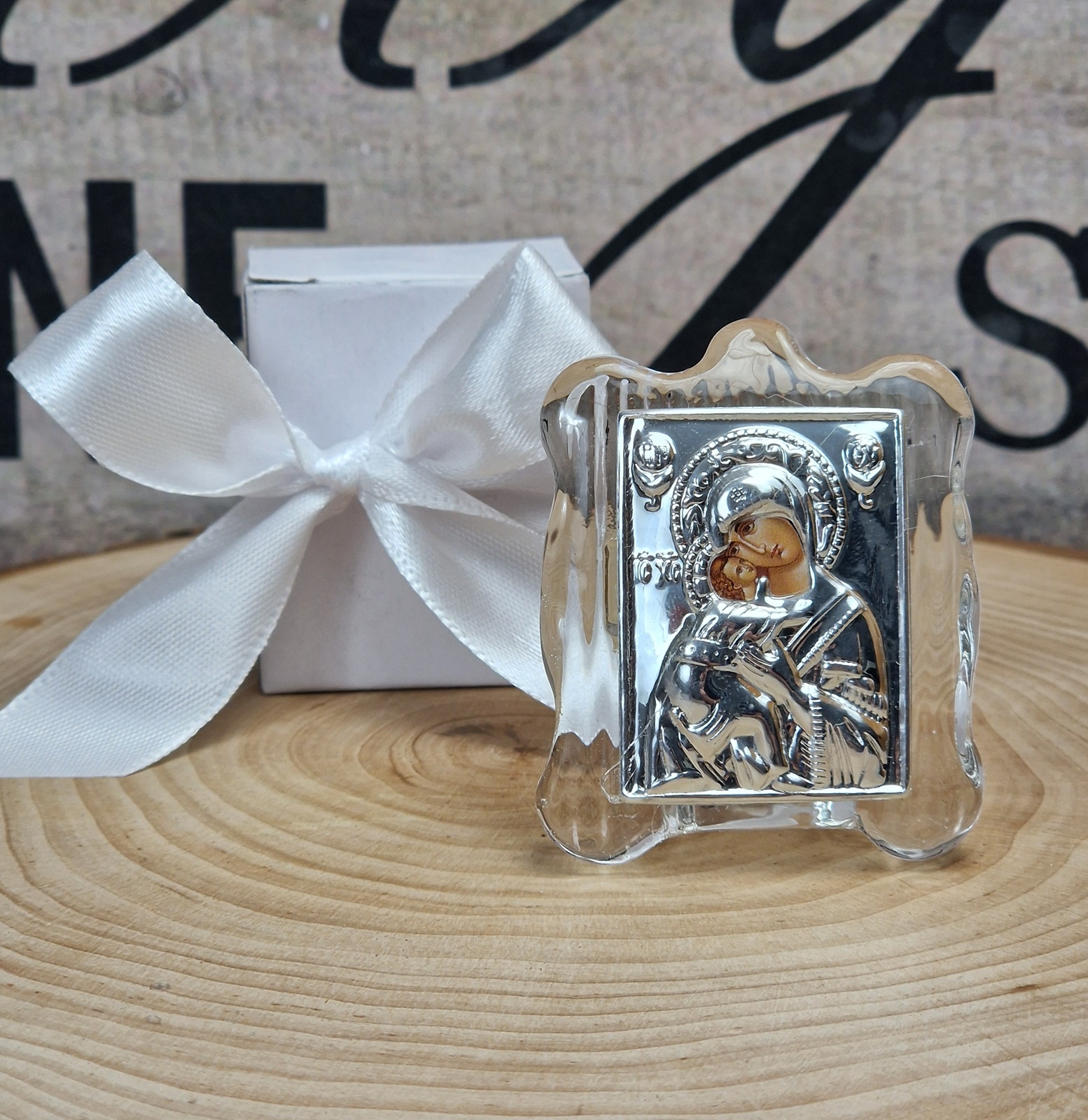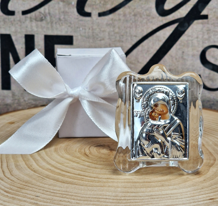 Iconita Maica Domnului pe suport de sticla TRANSPARENT