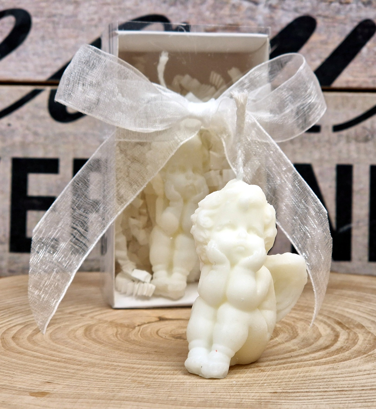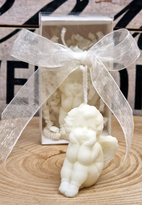 Surprinde-ți invitații cu o marturie de botez speciala - o lumânare din ceara soia in forma de INGERAS ambalata elegant într-o cutie TRANSPARENTA cu fereastră.