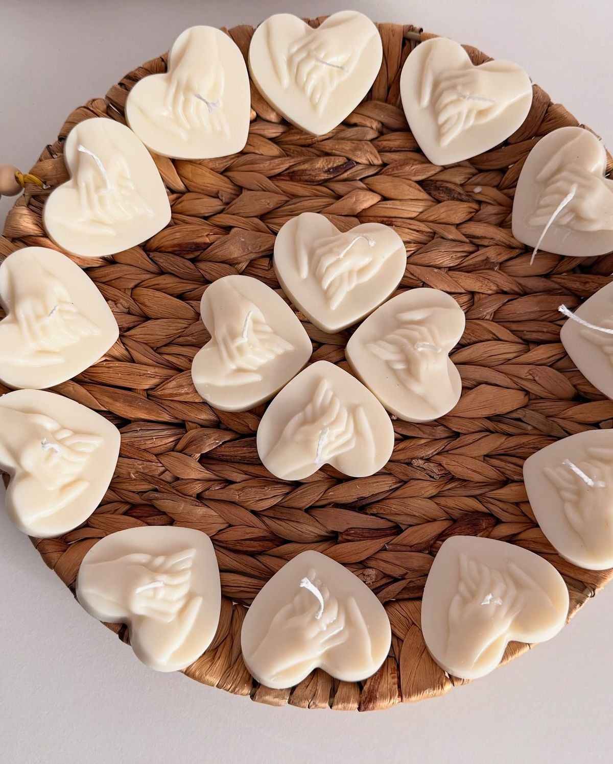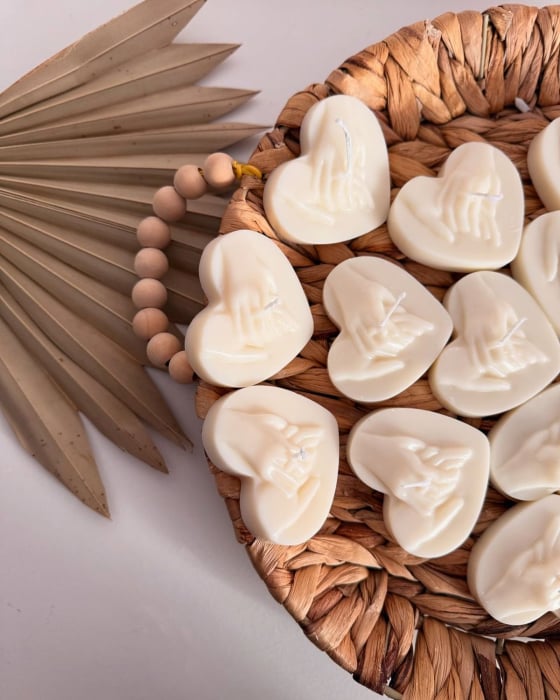 Lumânarea în formă de inimă cu mâinile împreunate în relief, transmite un mesaj puternic despre unitate, sprijin reciproc și promisiune. Designul este delicat, dar expresiv — nu este încărcat, ceea ce o face potrivită pentru nunți clasice, romantice sau chiar minimaliste.
