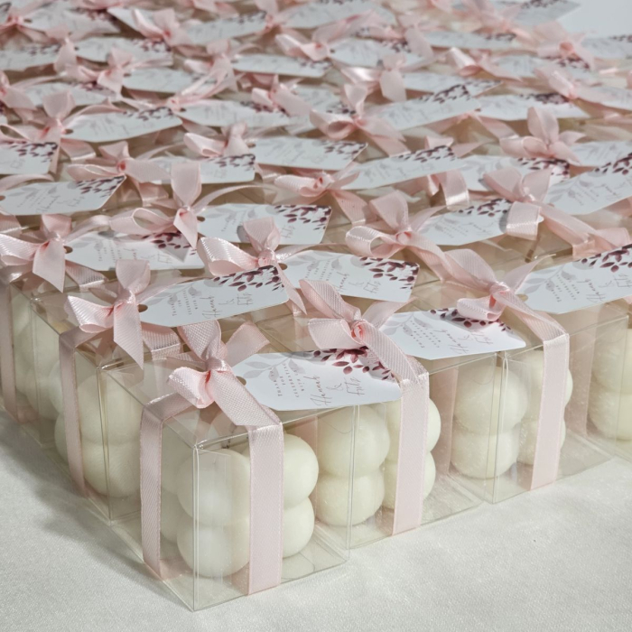 Surprinde-ți invitații cu o marturie de botez speciala - o lumânare din ceara soia bubble personalizata si ambalata elegant.