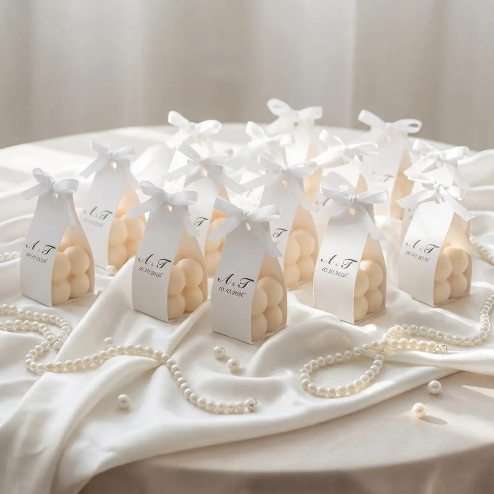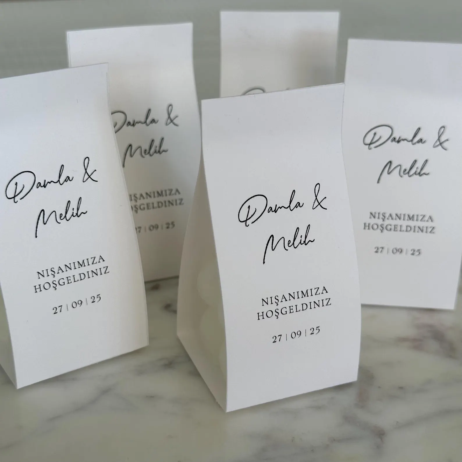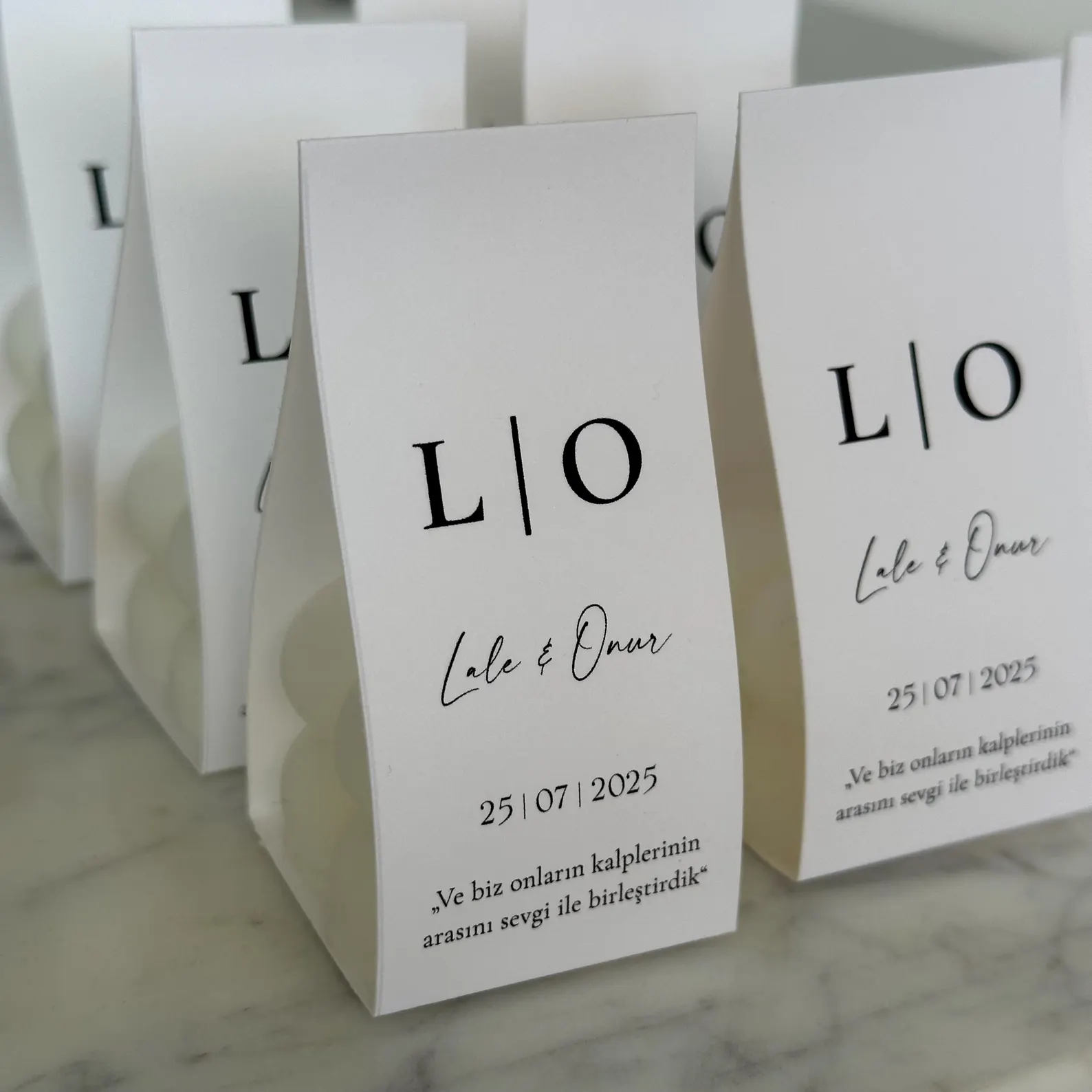• Ambalaj Elegant: Ambalajul din carton adaugă un plus de rafinament și poate fi personalizat cu numele mirilor, data evenimentului si un mesaj de multumire