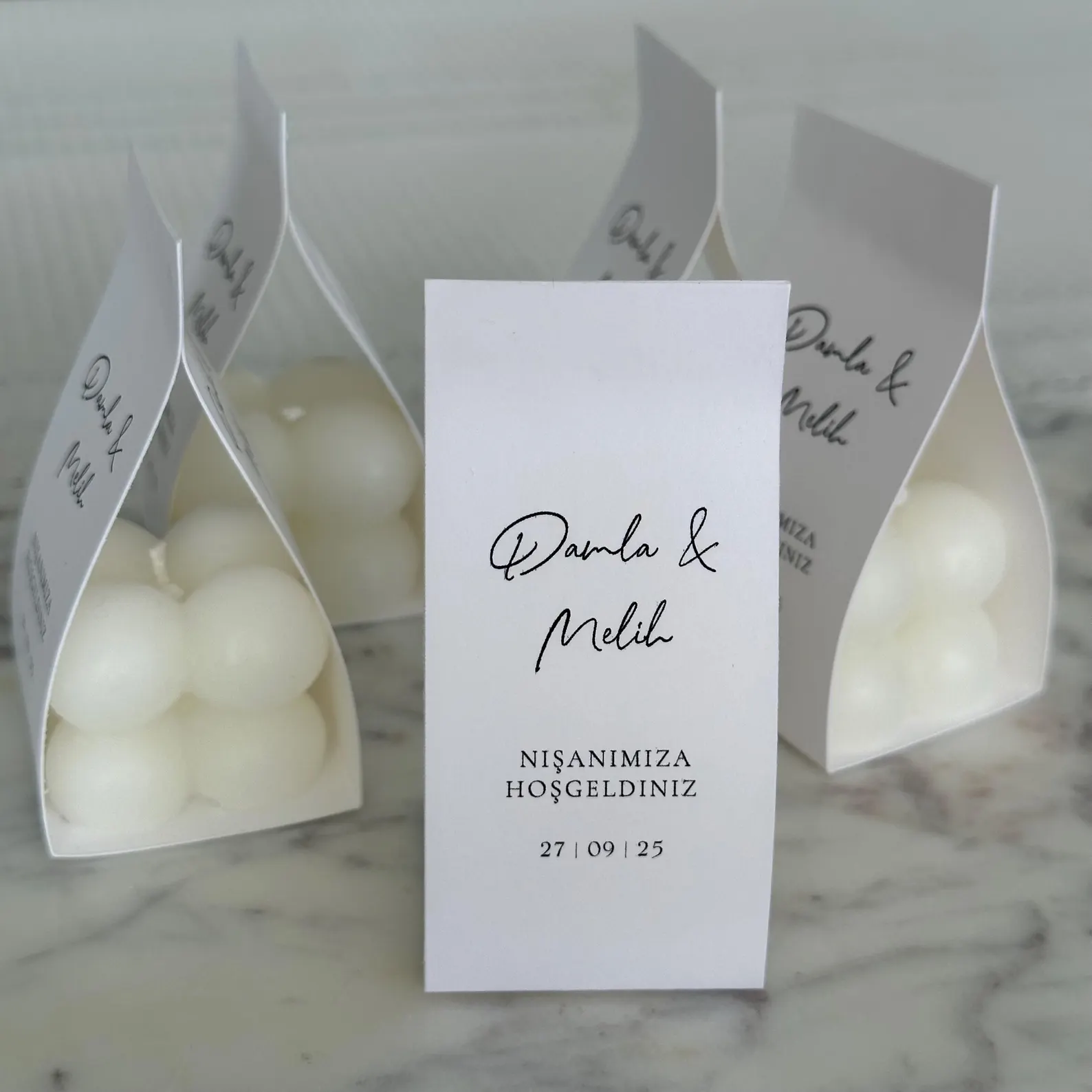 • Dimensiune  4x4 cm, perfectă pentru a fi așezată pe mesele invitaților