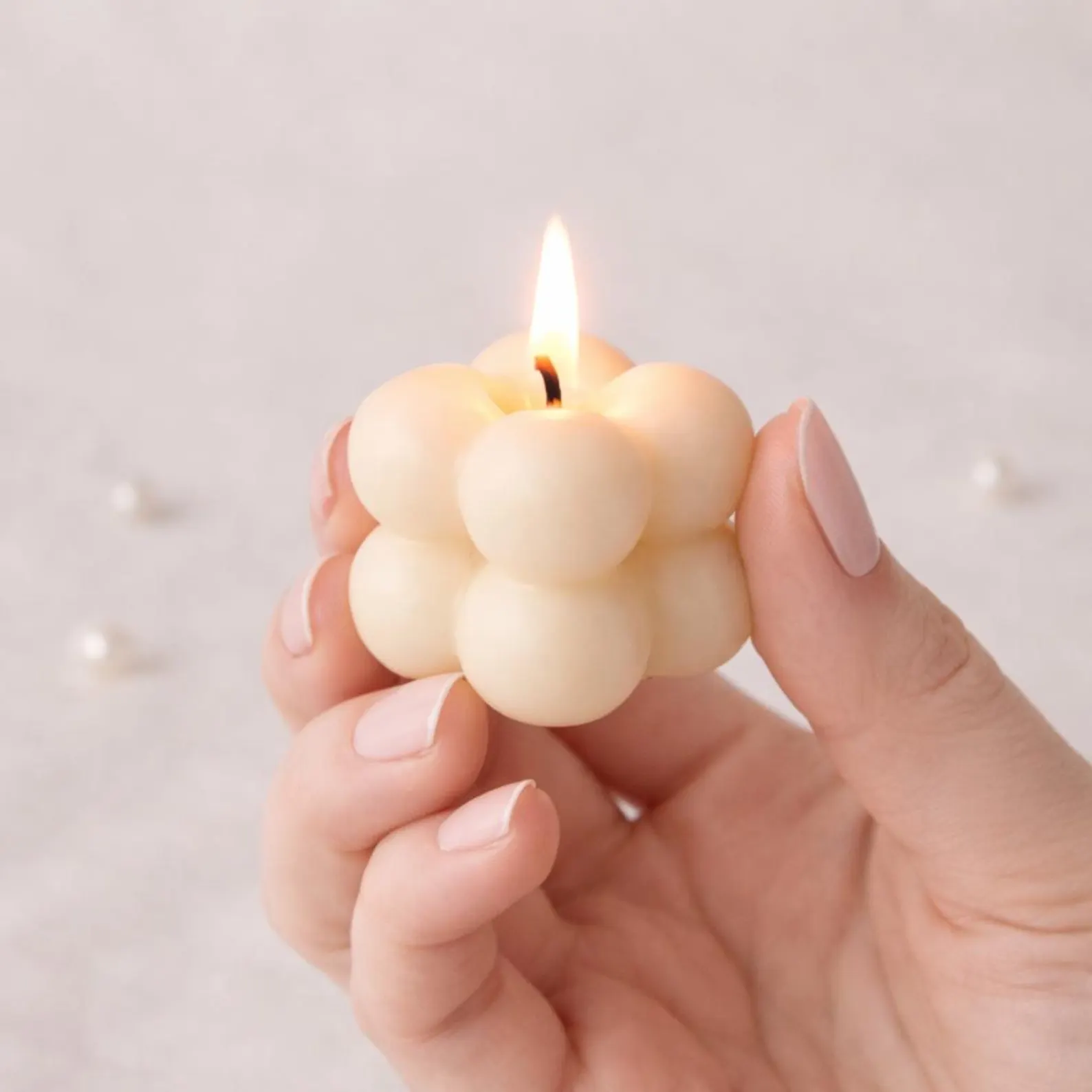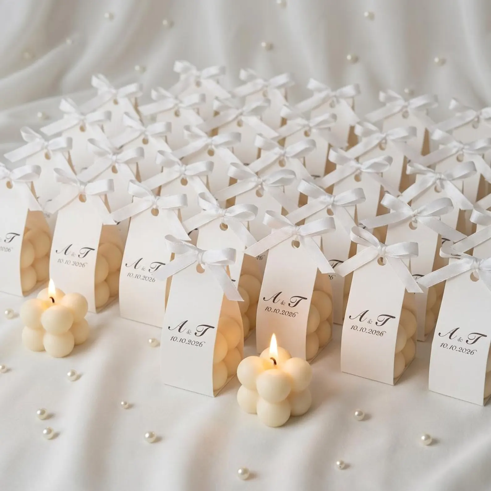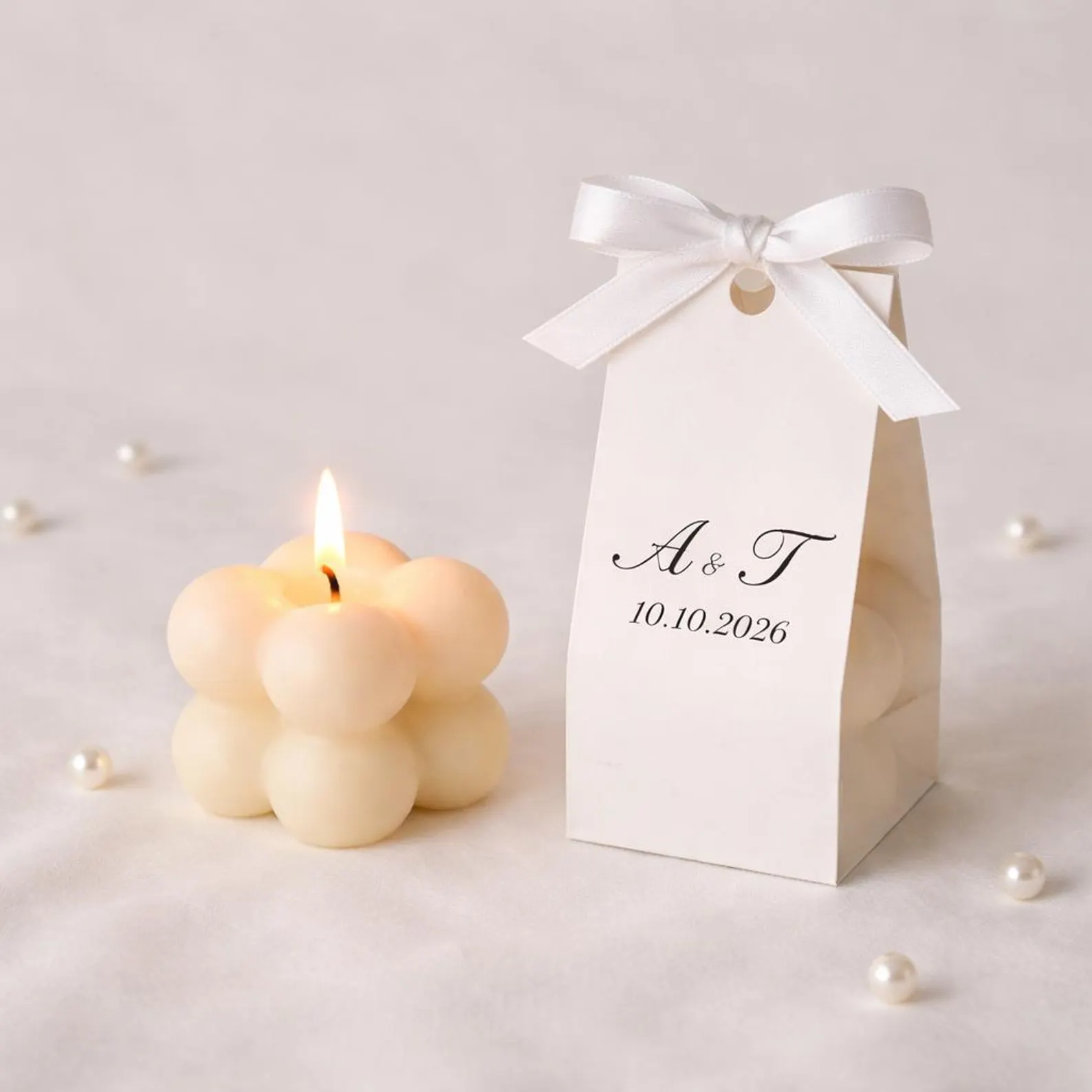 Lumânare mărturie bubble 4×4 cm, turnată manual din ceară de soia  cu fitil din bumbac organic.Surprinde-ți invitații cu o marturie de botez speciala - o lumânare din ceara soia personalizata si ambalata elegant.