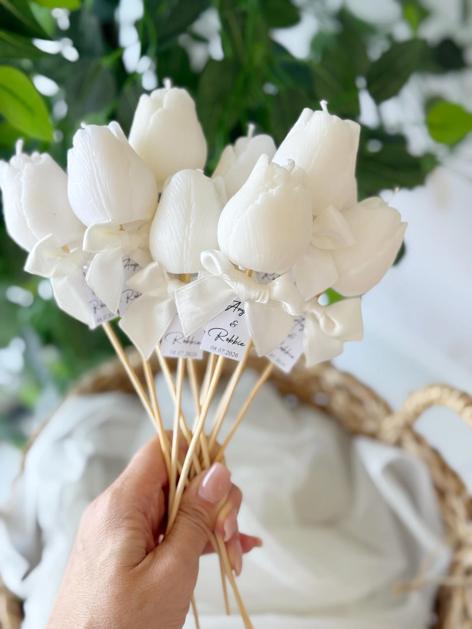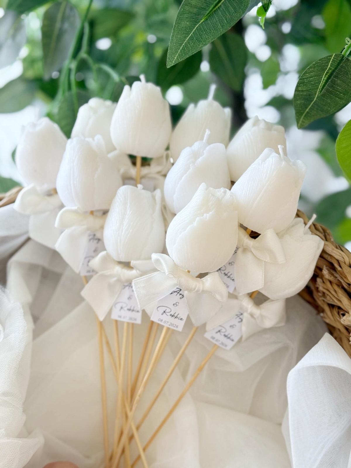 mărturii nunta lumanare in forma de o delicata LALEA, turnată manual din ceară de soia  cu fitil din bumbac organic.Surprinde-ți invitații cu o marturie de NUNTĂ speciala - o lumânare în formă de floare din ceara soia personalizata