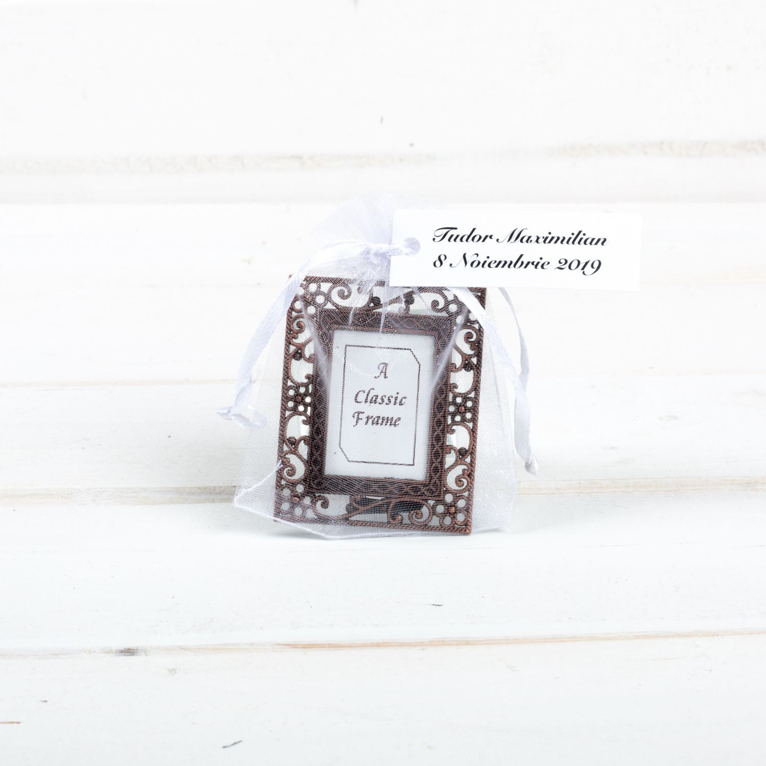 Optional, rama poate fi personalizata cu poza dvs si/sau cu o etichete cu numele si data evenimentului.