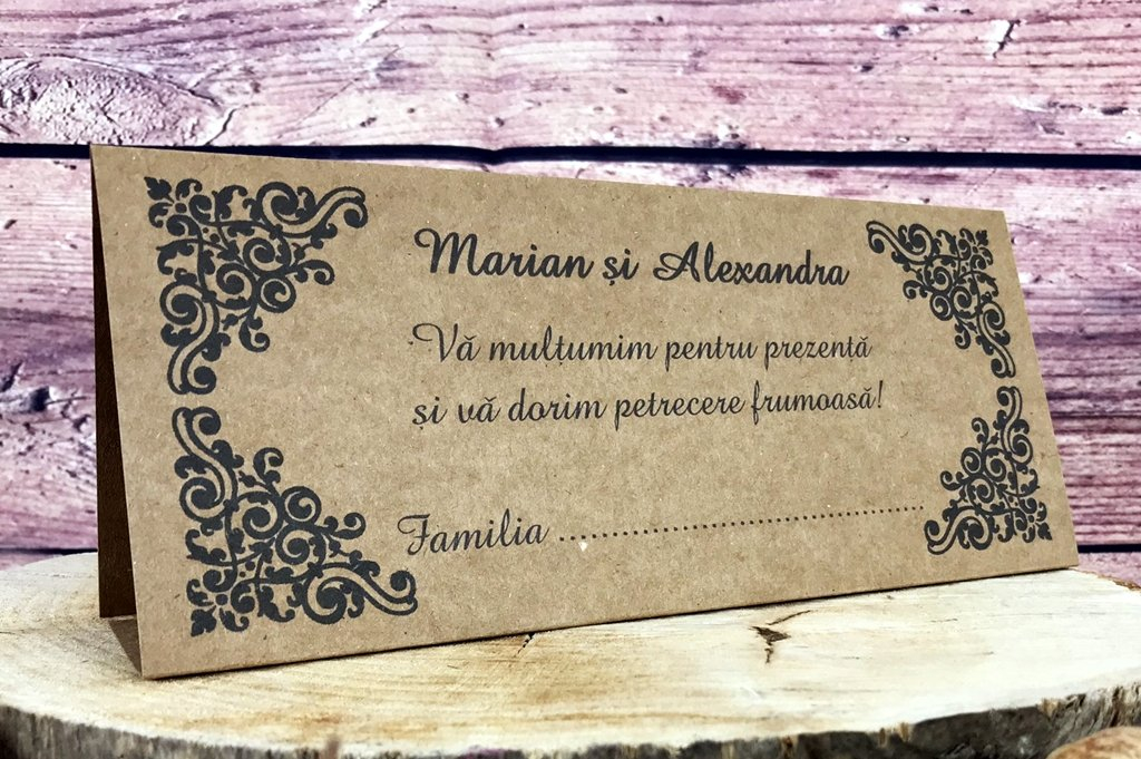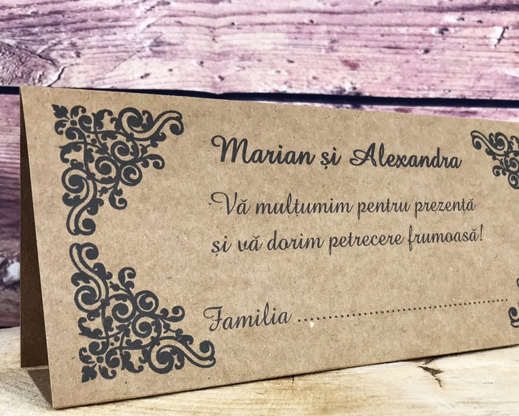 Poate fi folosit atat ca place card (pentru asezarea invitatilor la mese) cat si ca plic pentru primirea "darului".