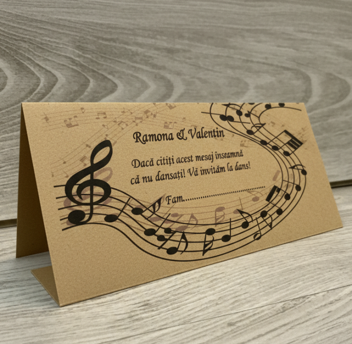 Are un dublu rol: poate fi folosit atat ca place card (pentru asezarea invitatilor la mese) cat si ca plic pentru primirea "darului".